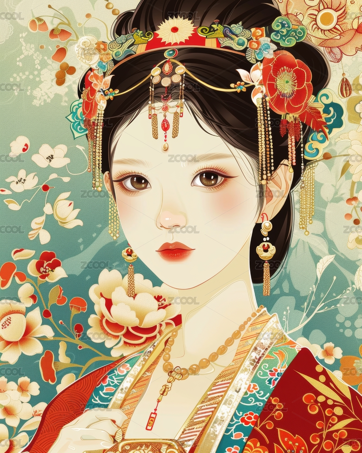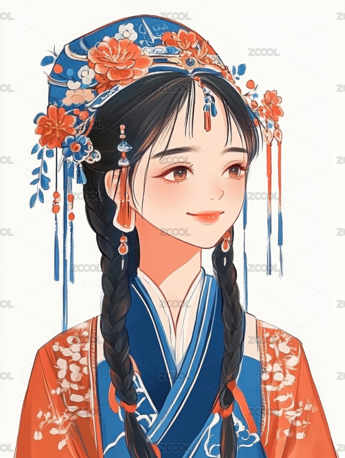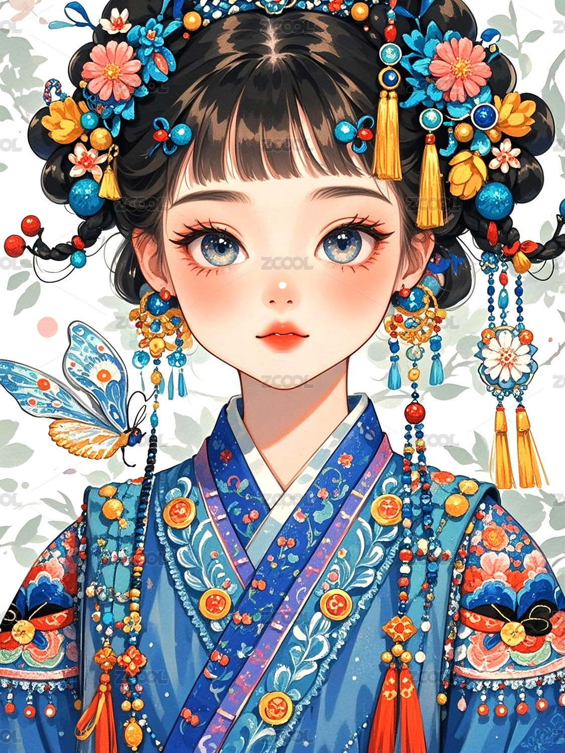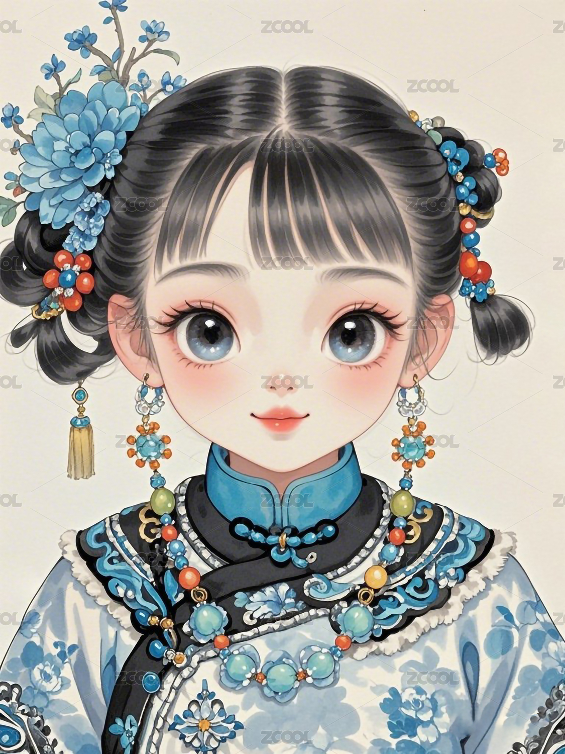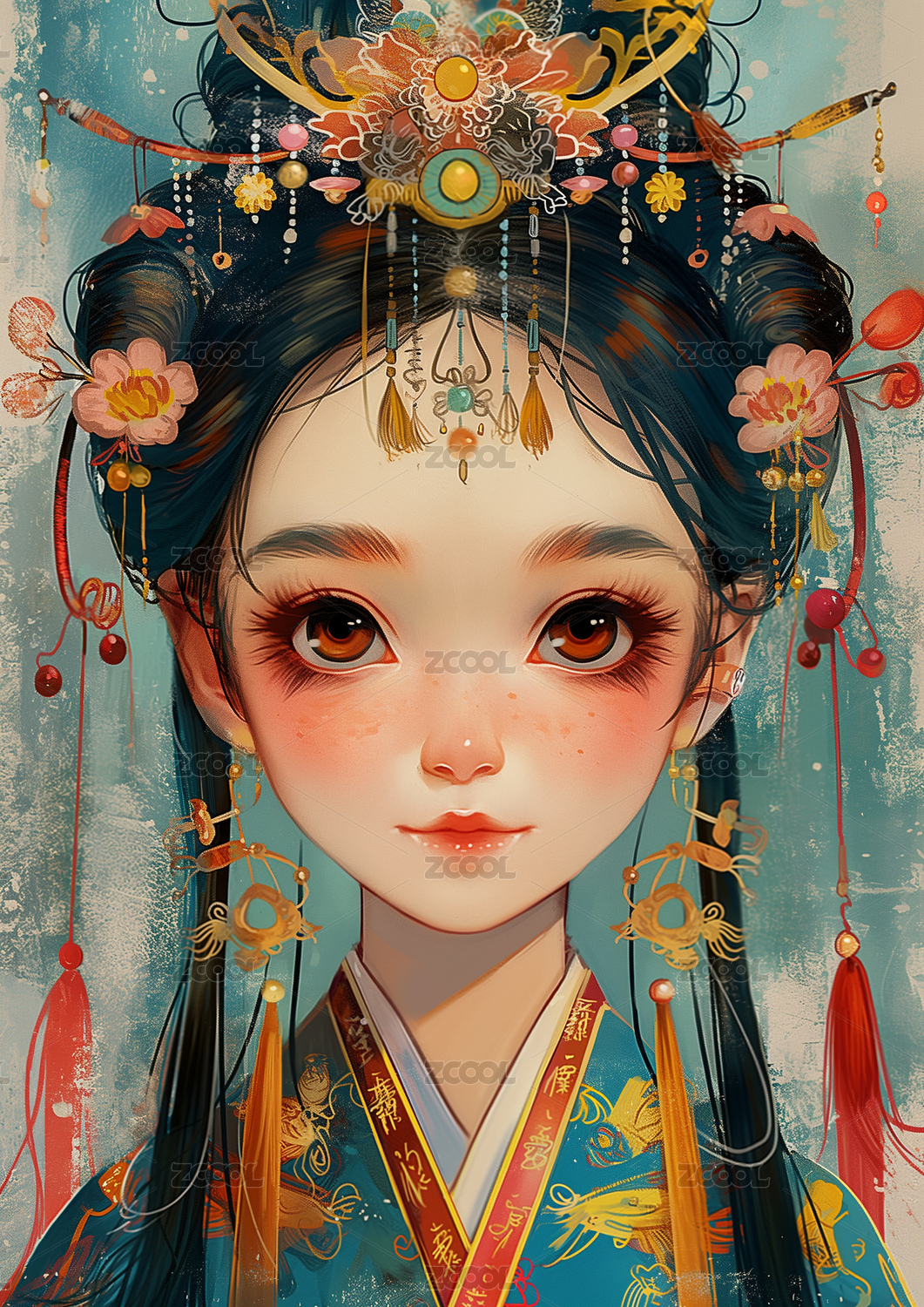 插画民族服饰国风珠宝首饰可爱女孩手绘风