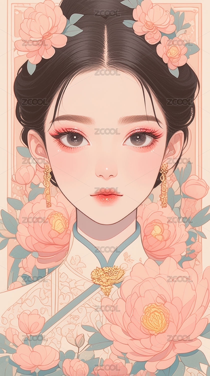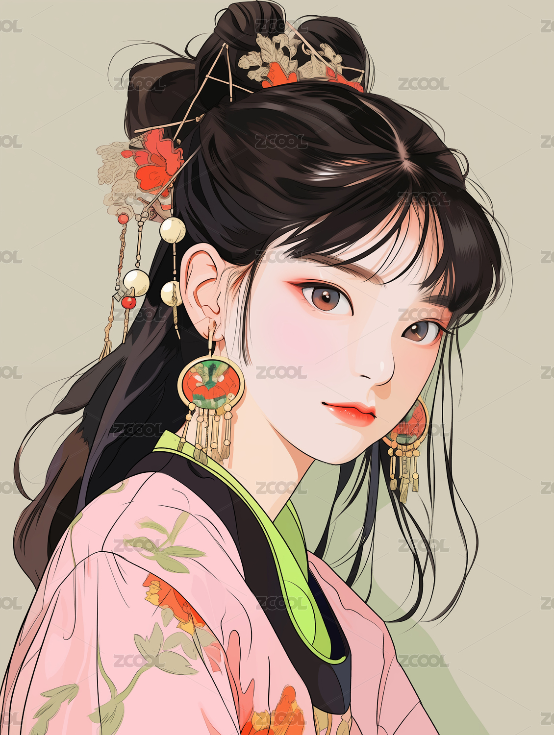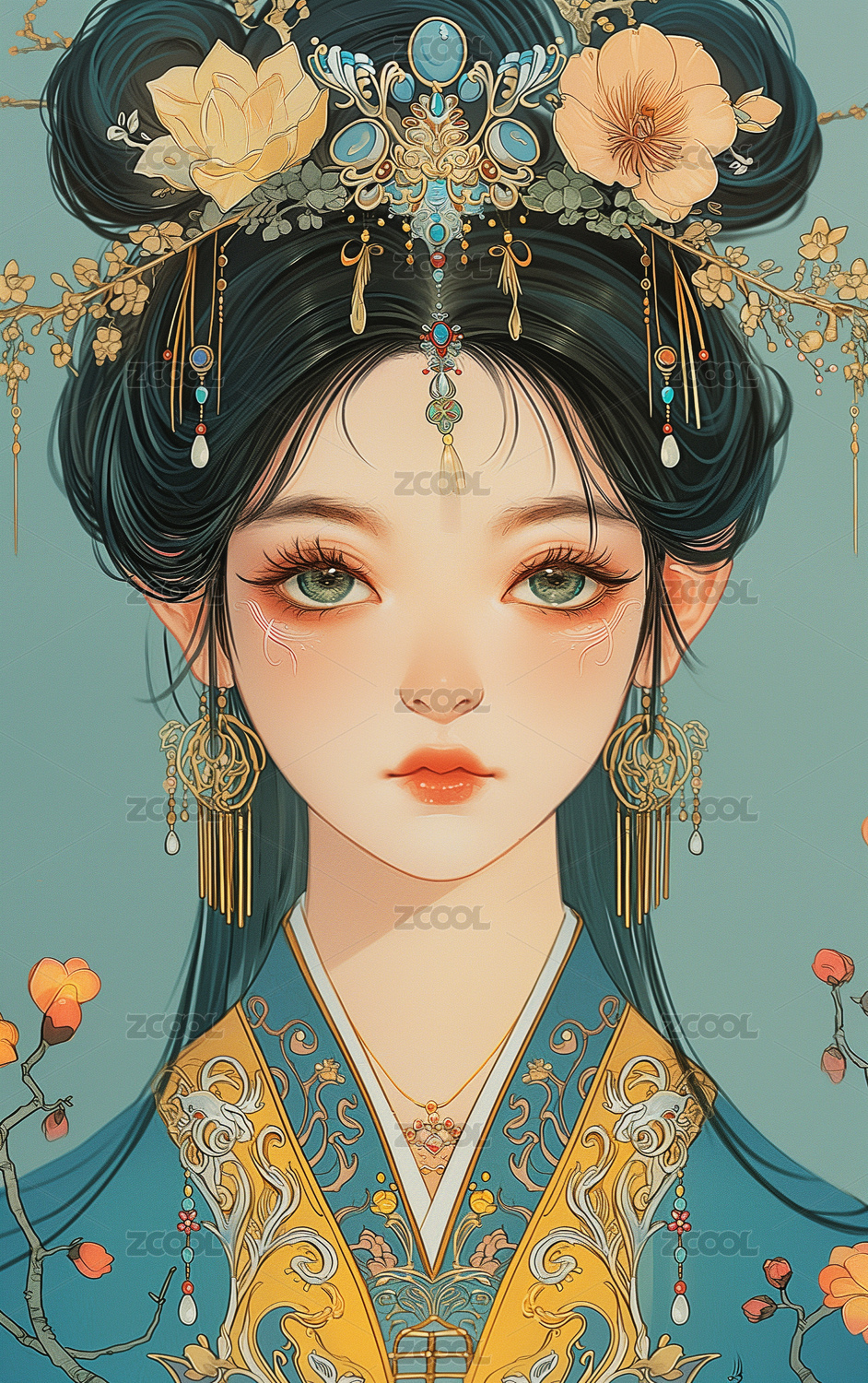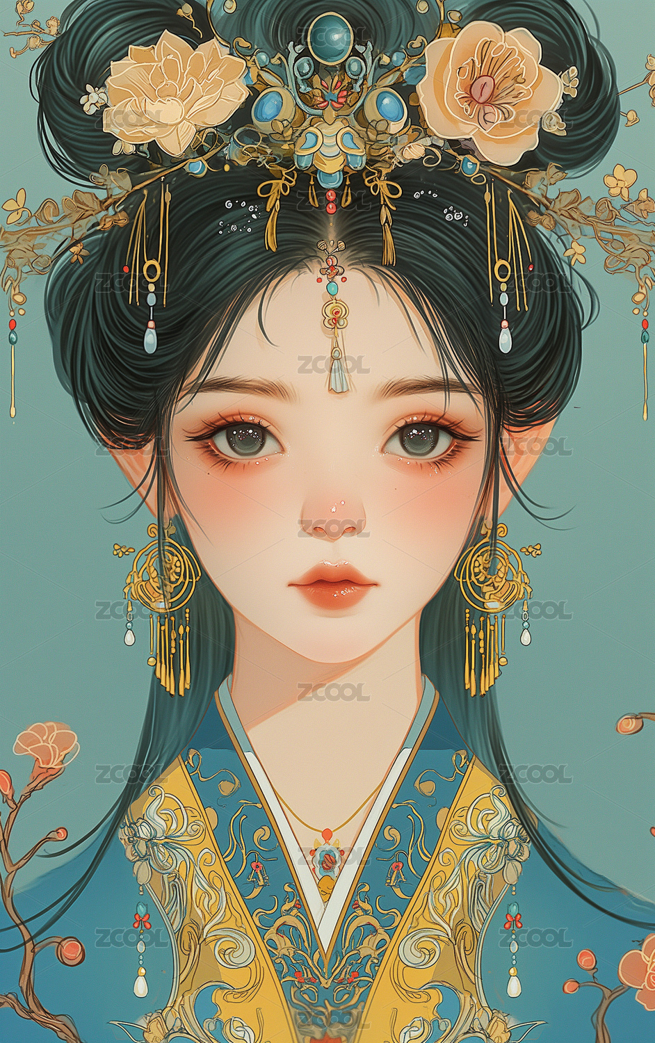 插画民族服饰国风珠宝首饰可爱女孩手绘风