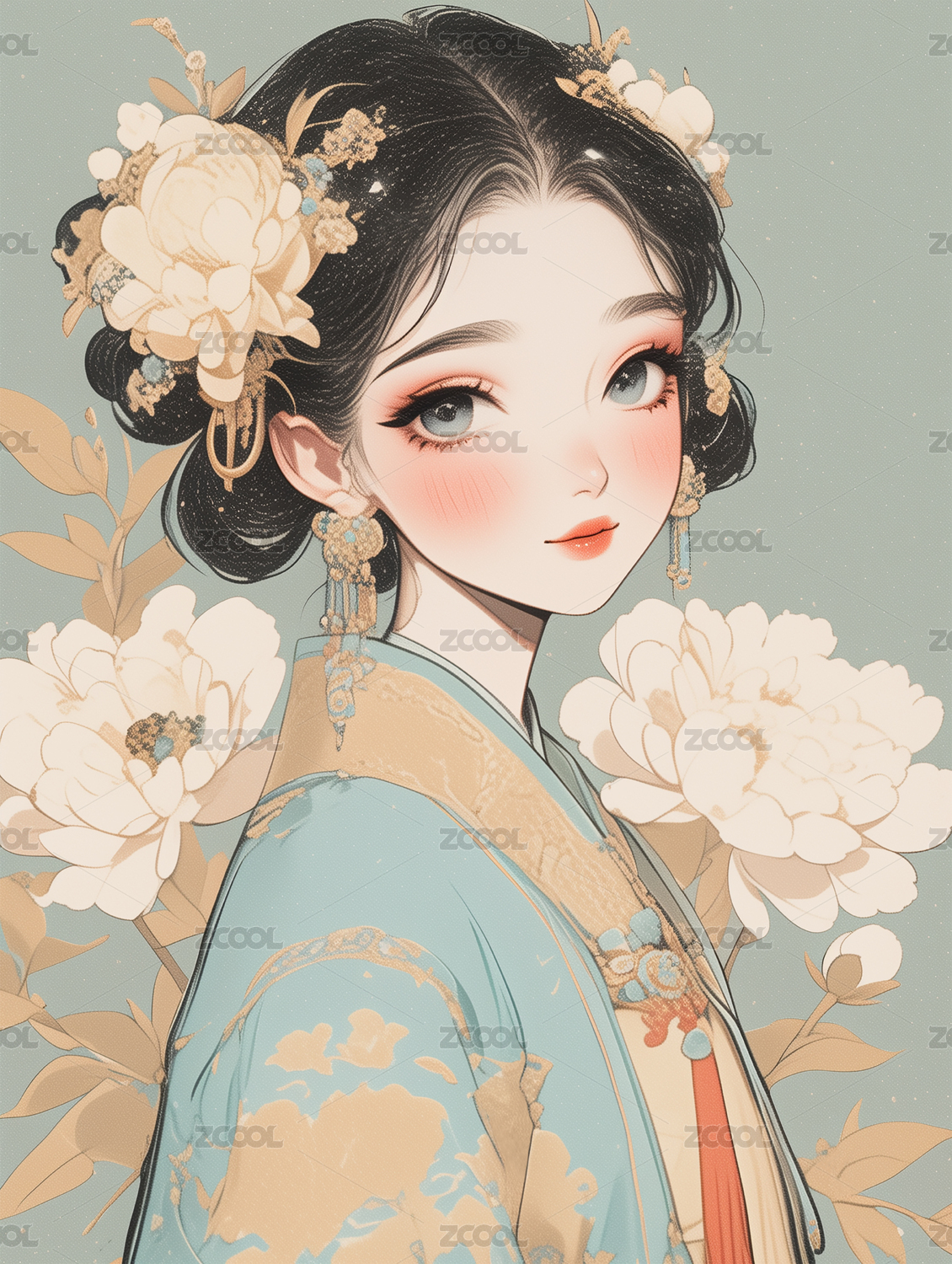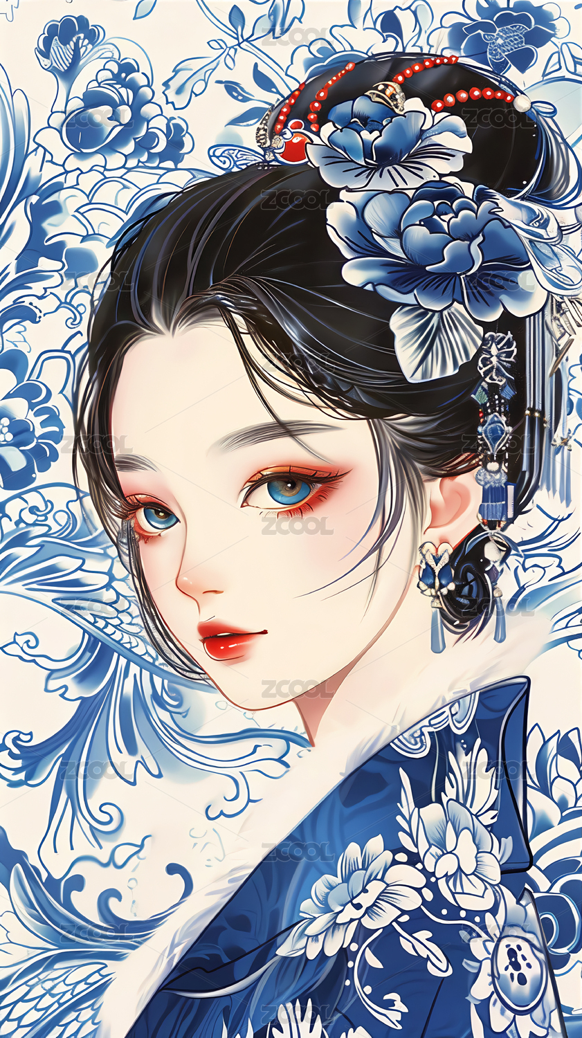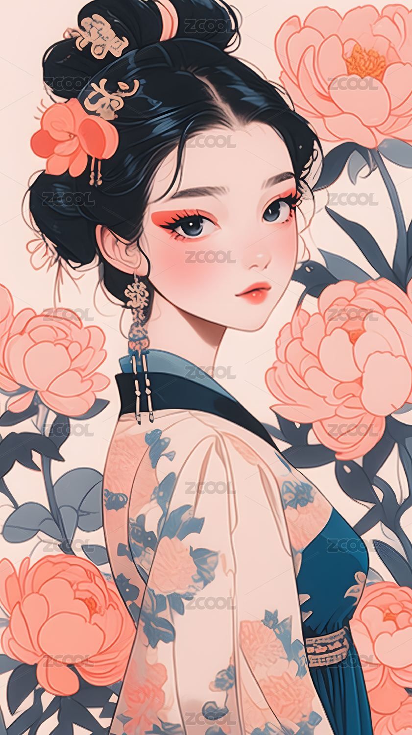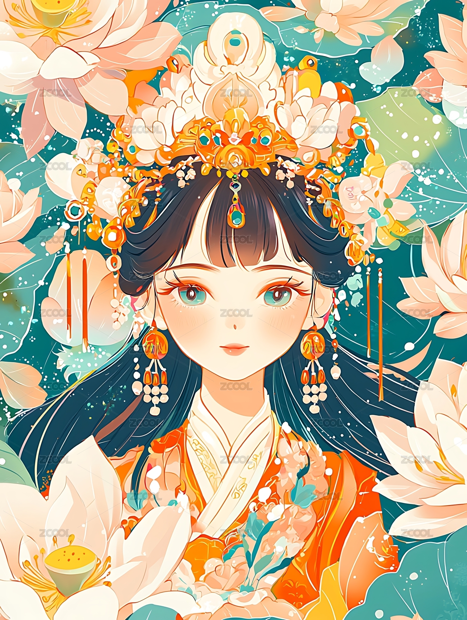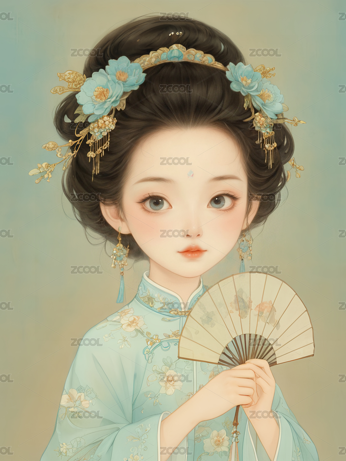 插画民族服饰国风珠宝首饰可爱女孩手绘风