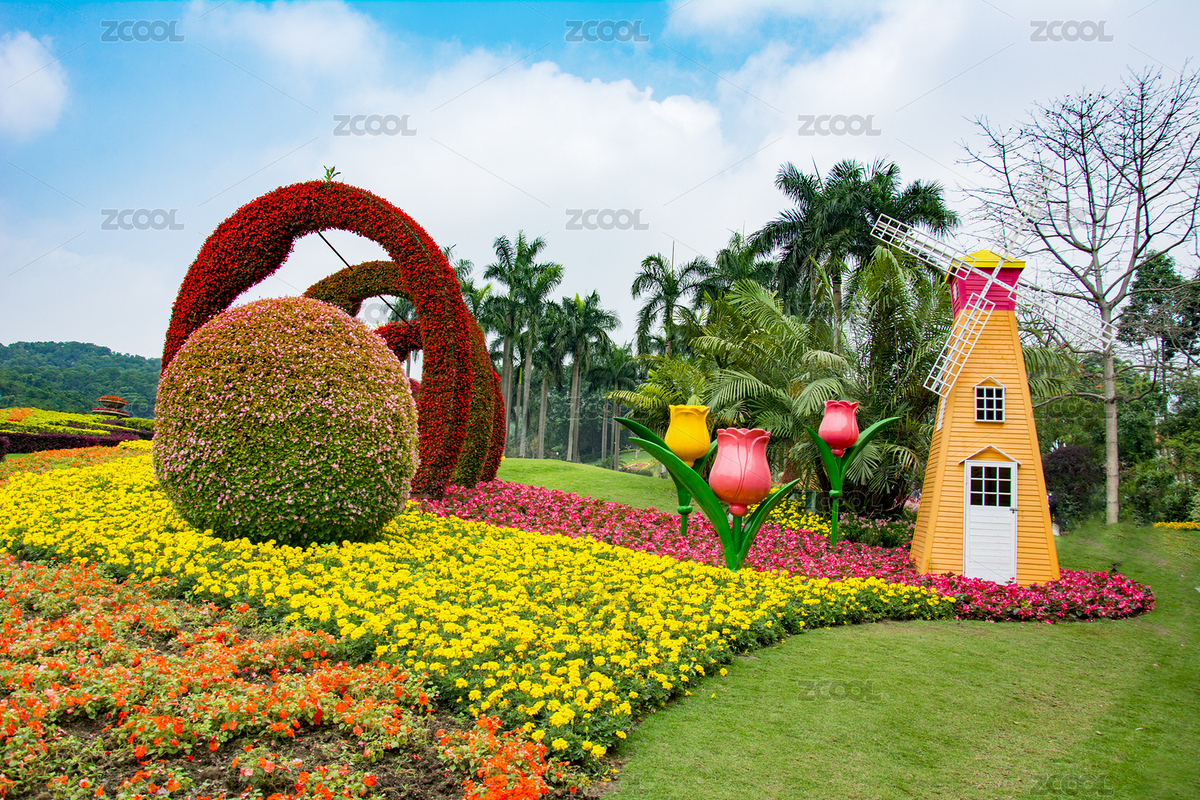 亚洲,中国,广东省,广州市,云台花园,花球,风车,郁金香,草,草坪