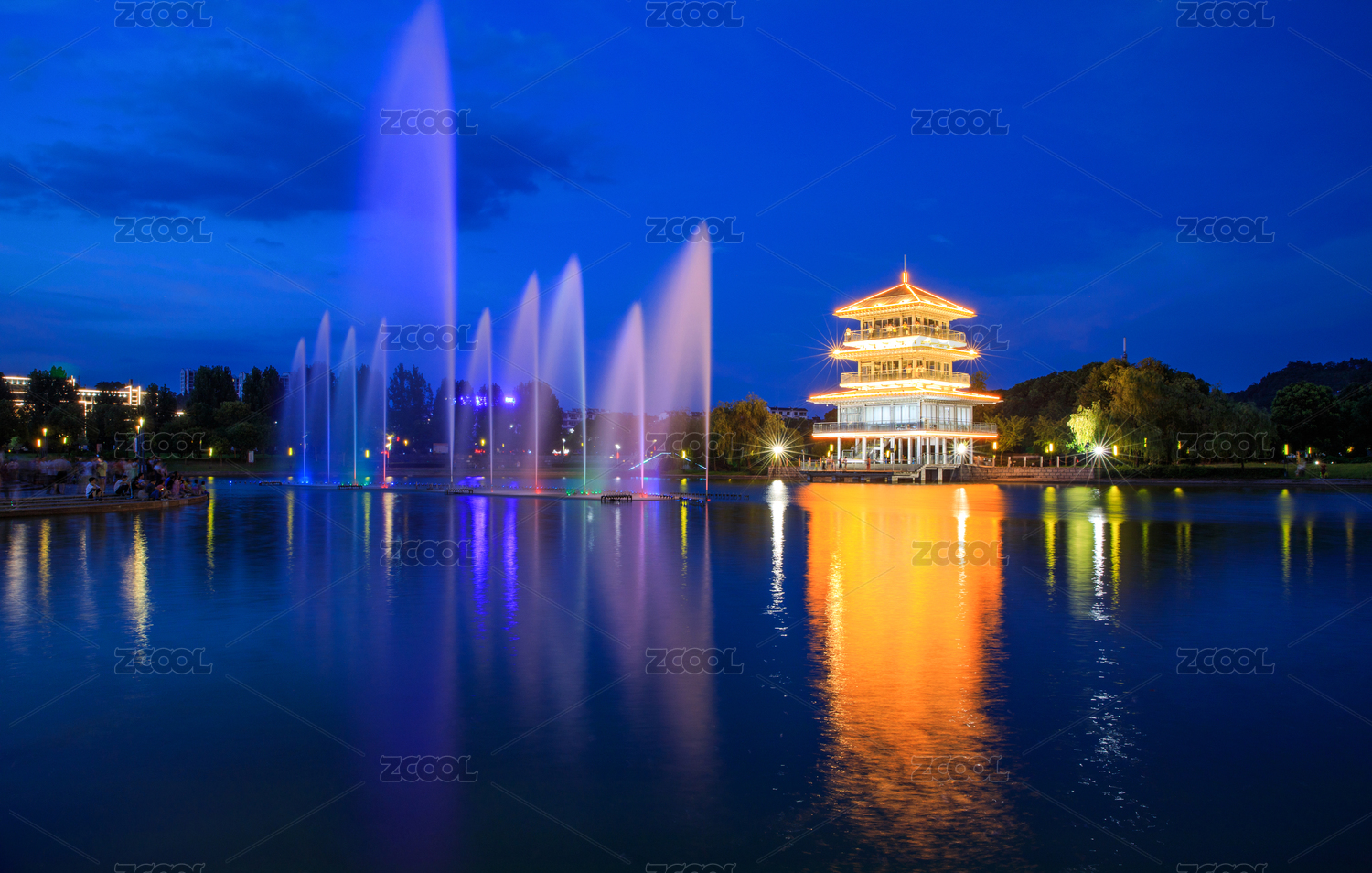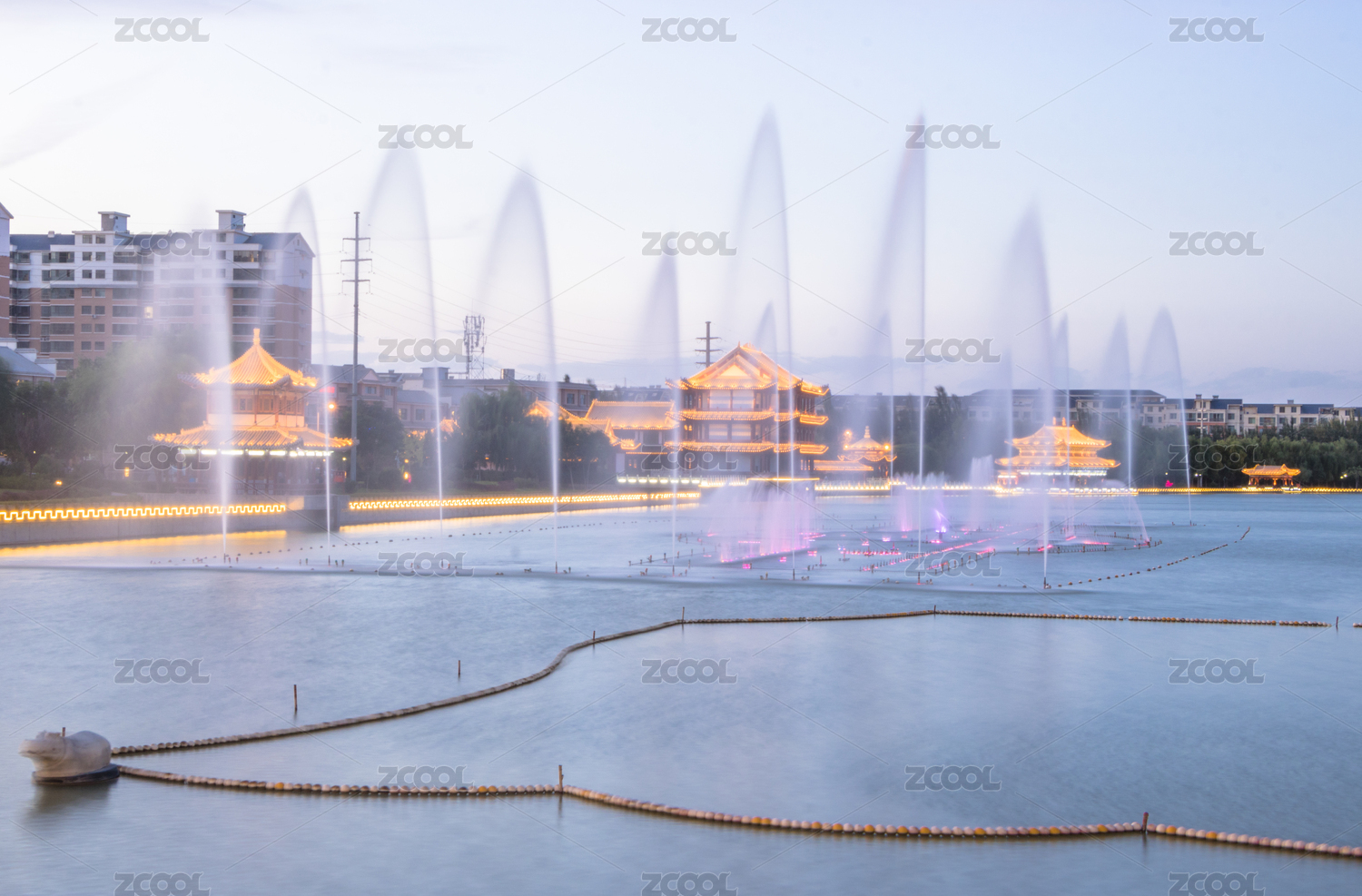 甘肃省,敦煌,城市,党河,河流,景观,建筑,风光,夜景,喷泉