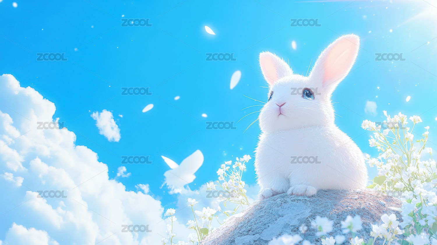 小兔子写实绘画风格动物主题壁纸3D卡通