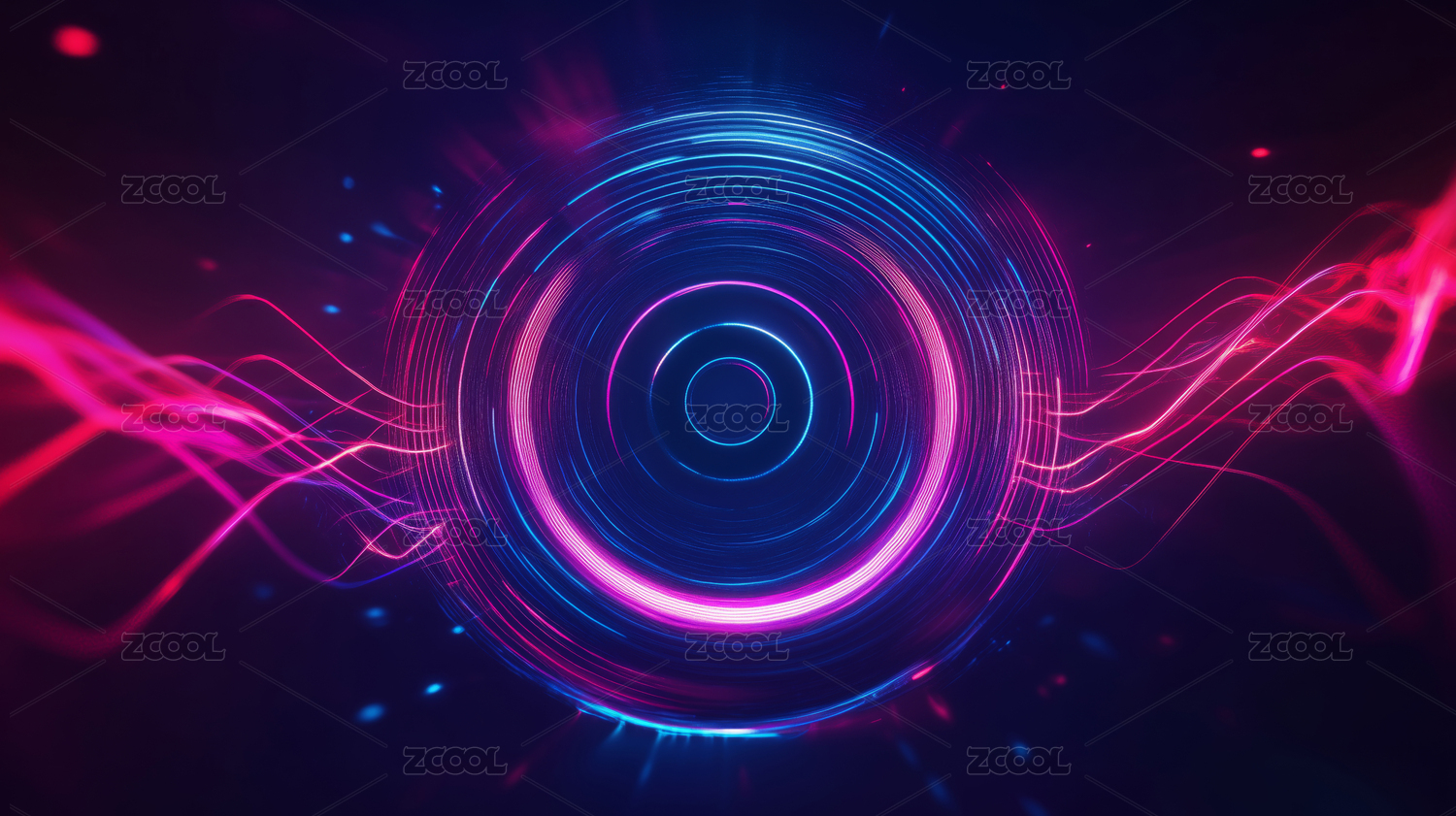 数码蓝粉圆形霓虹灯抽象图形海报网页背景
