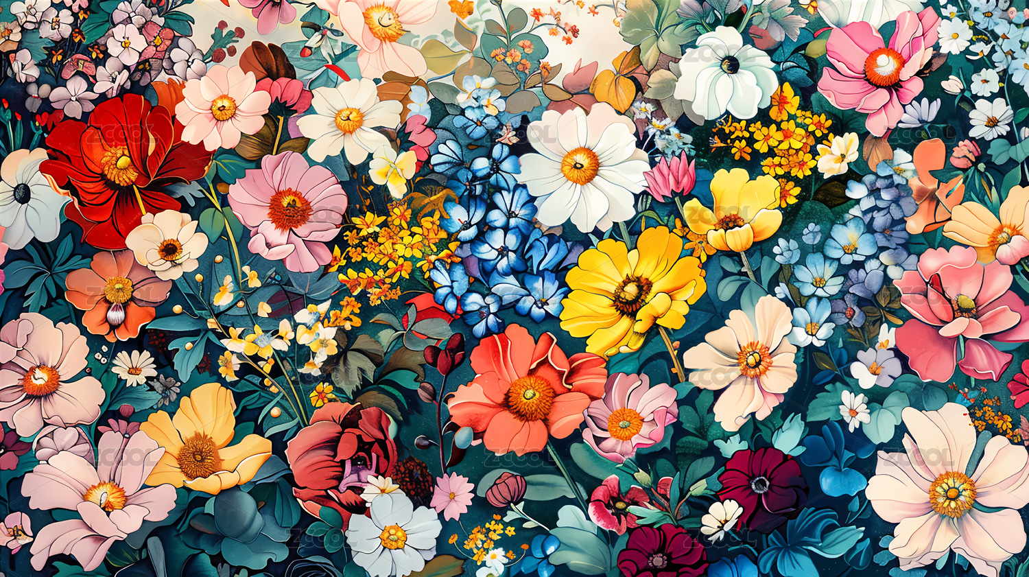 复古花卉图案:色彩斑斓的浪漫盛宴