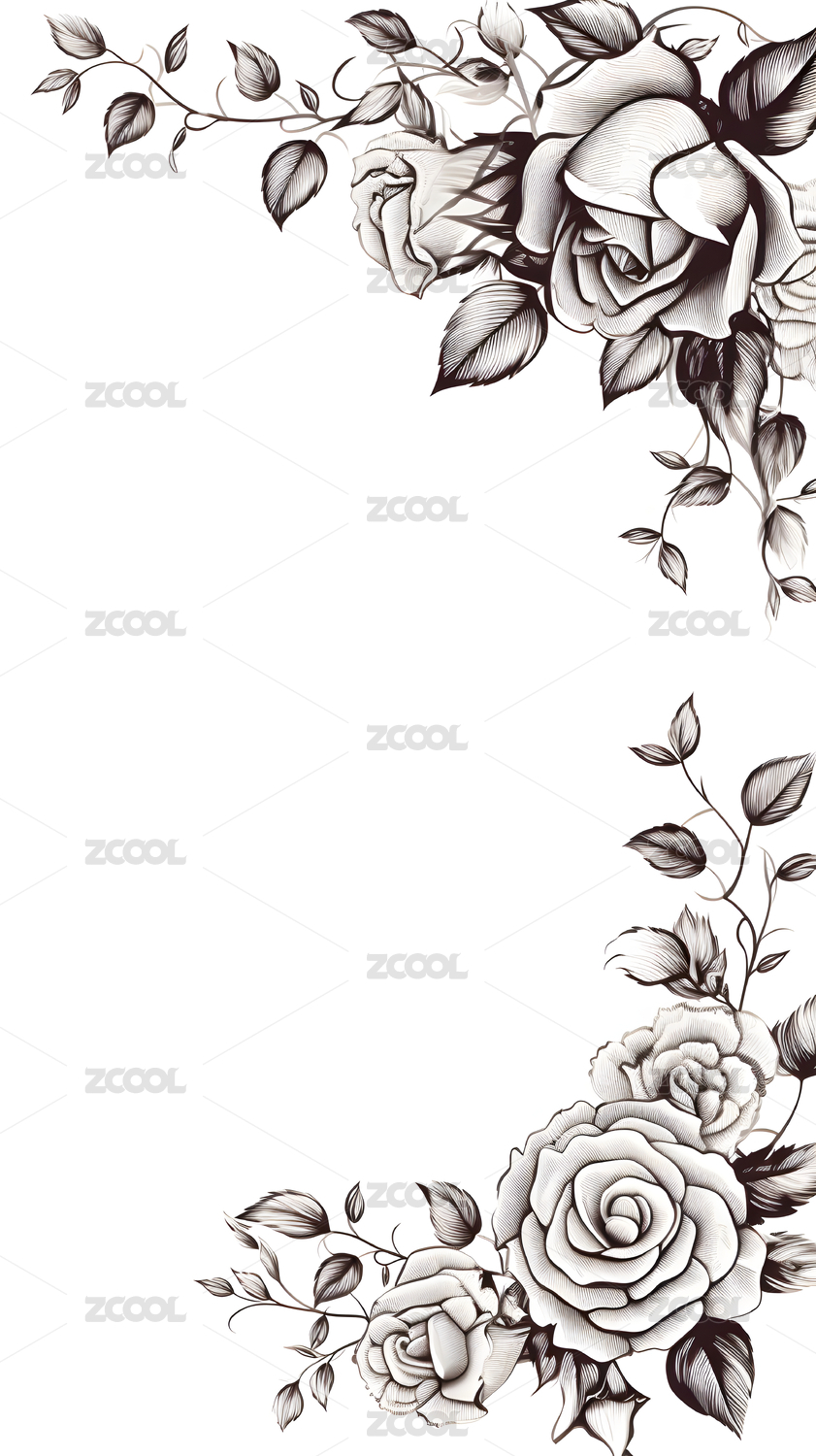 数码复古玫瑰边框牛皮纸图形海报手机端背景