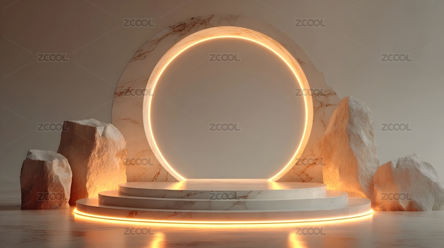 简约圆形光圈与白色平台设计