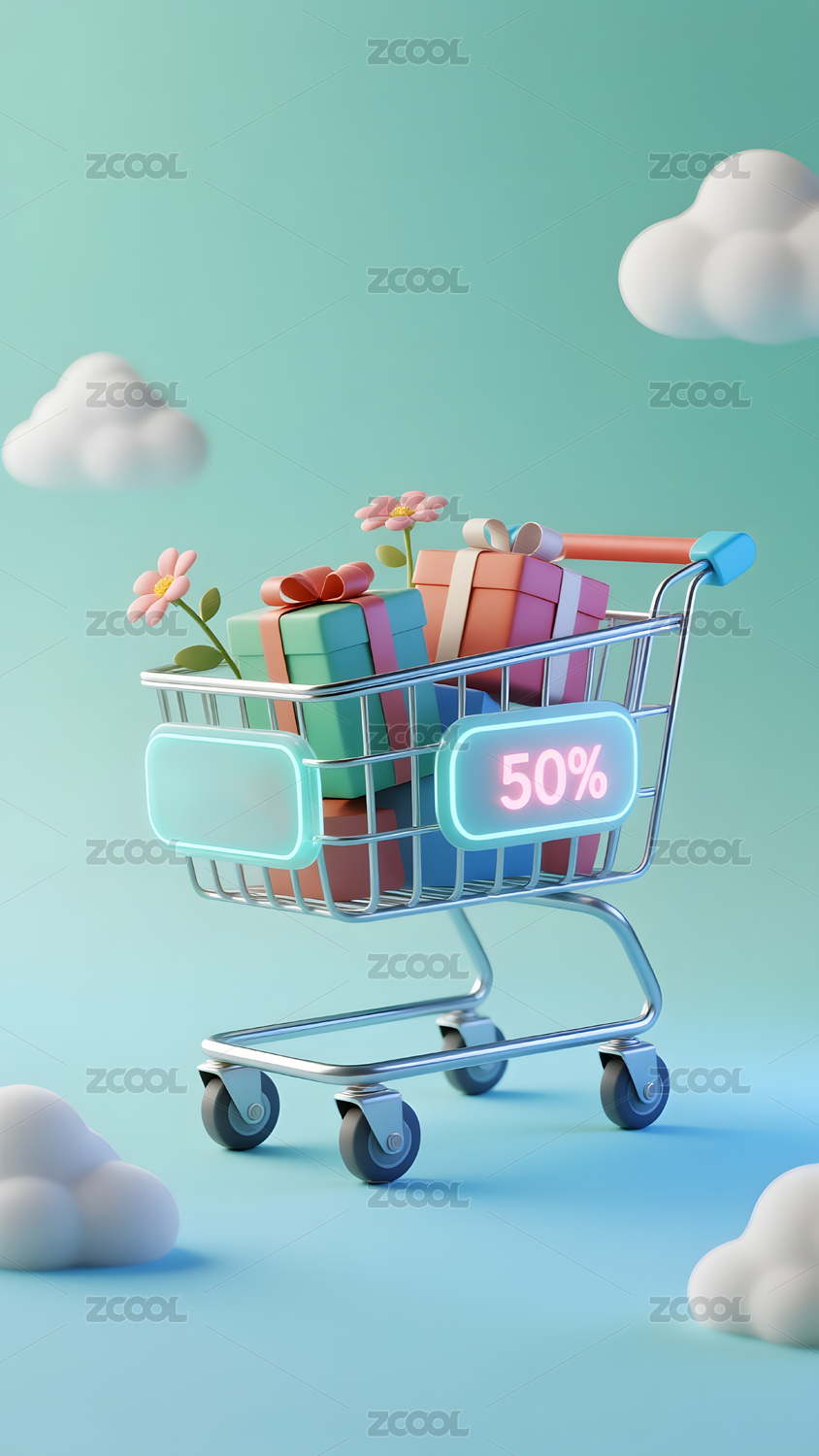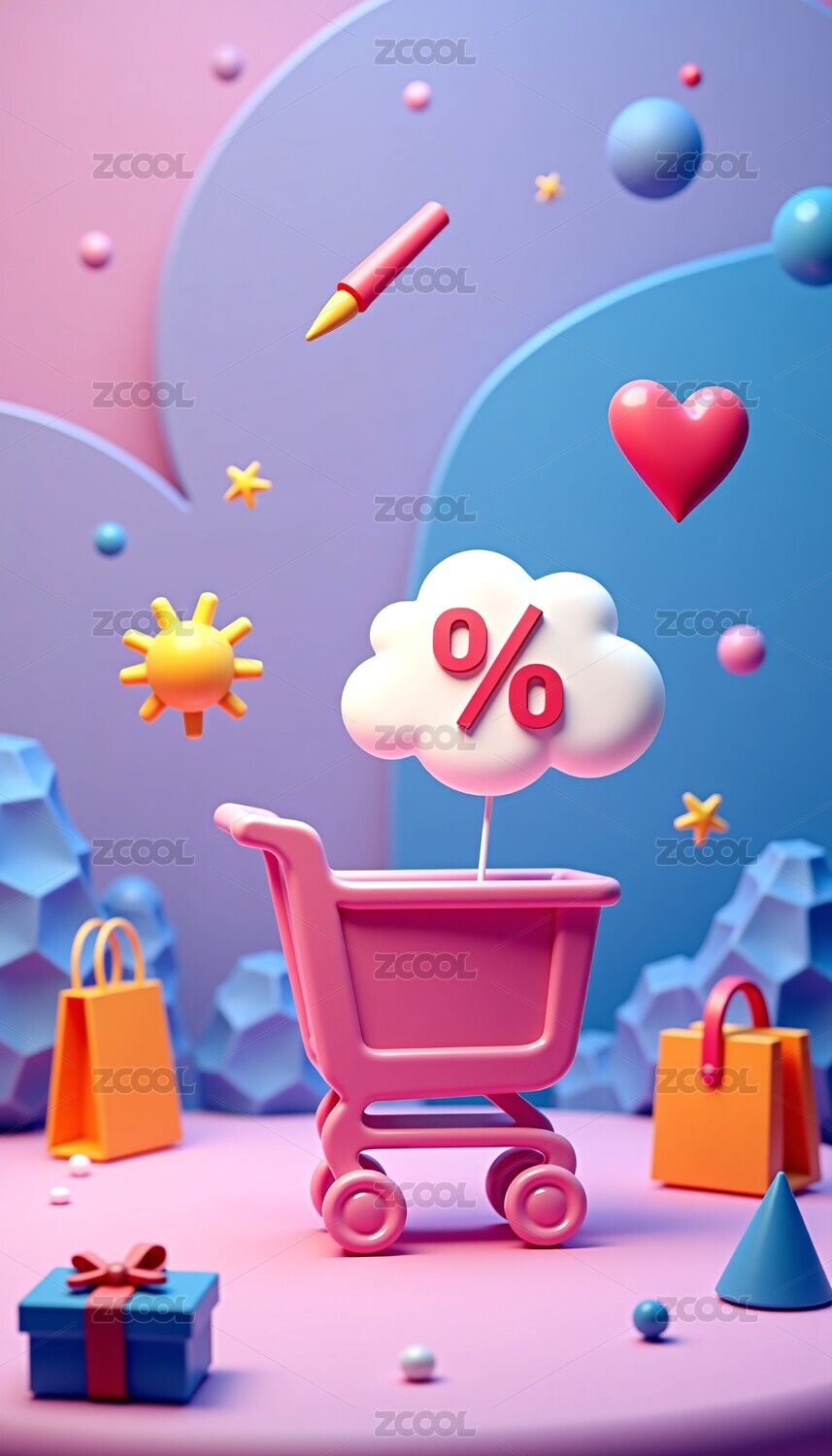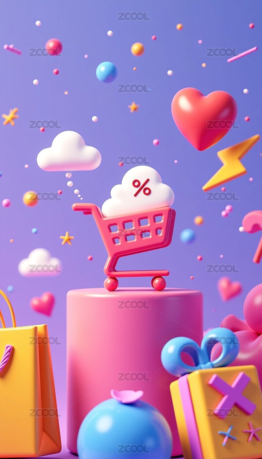 DXCZ202401,电商,双十一,购物,单身节,插画,购物车,篮子,商品,风格