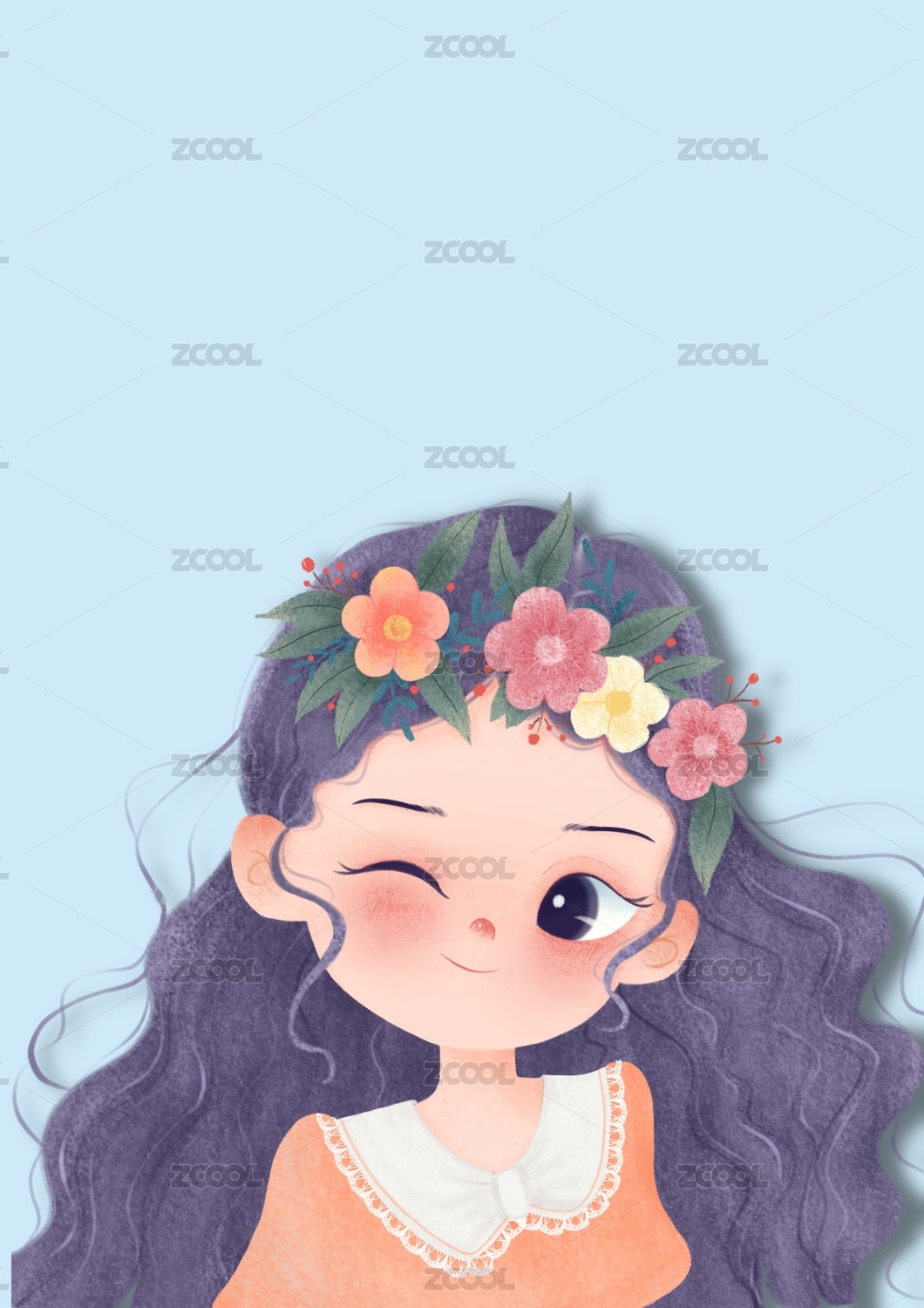 快乐,小女孩,女生,头像,壁纸,可爱,呆萌,花环,蓝色毛衣