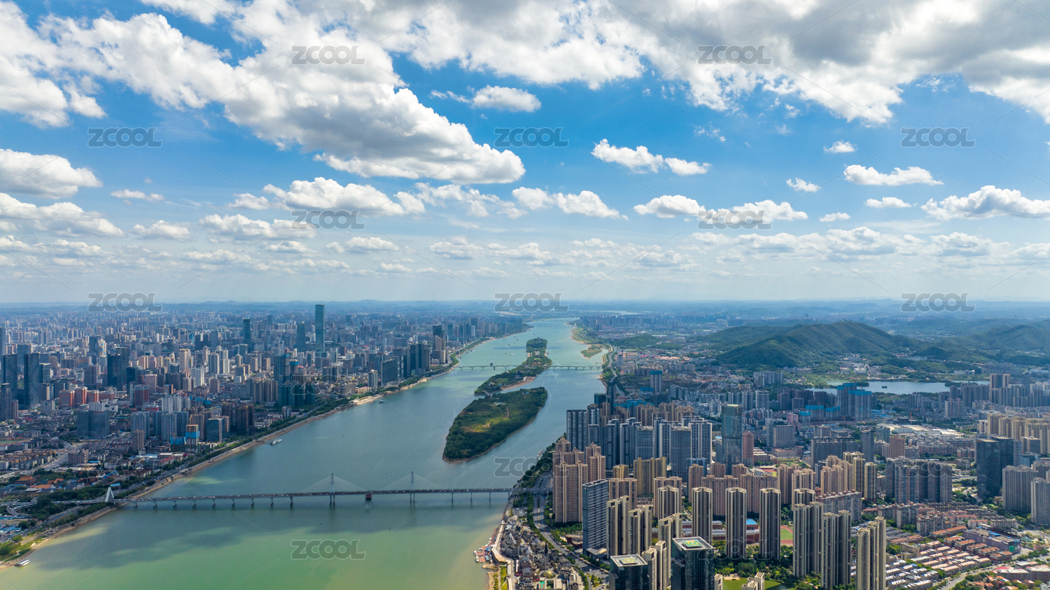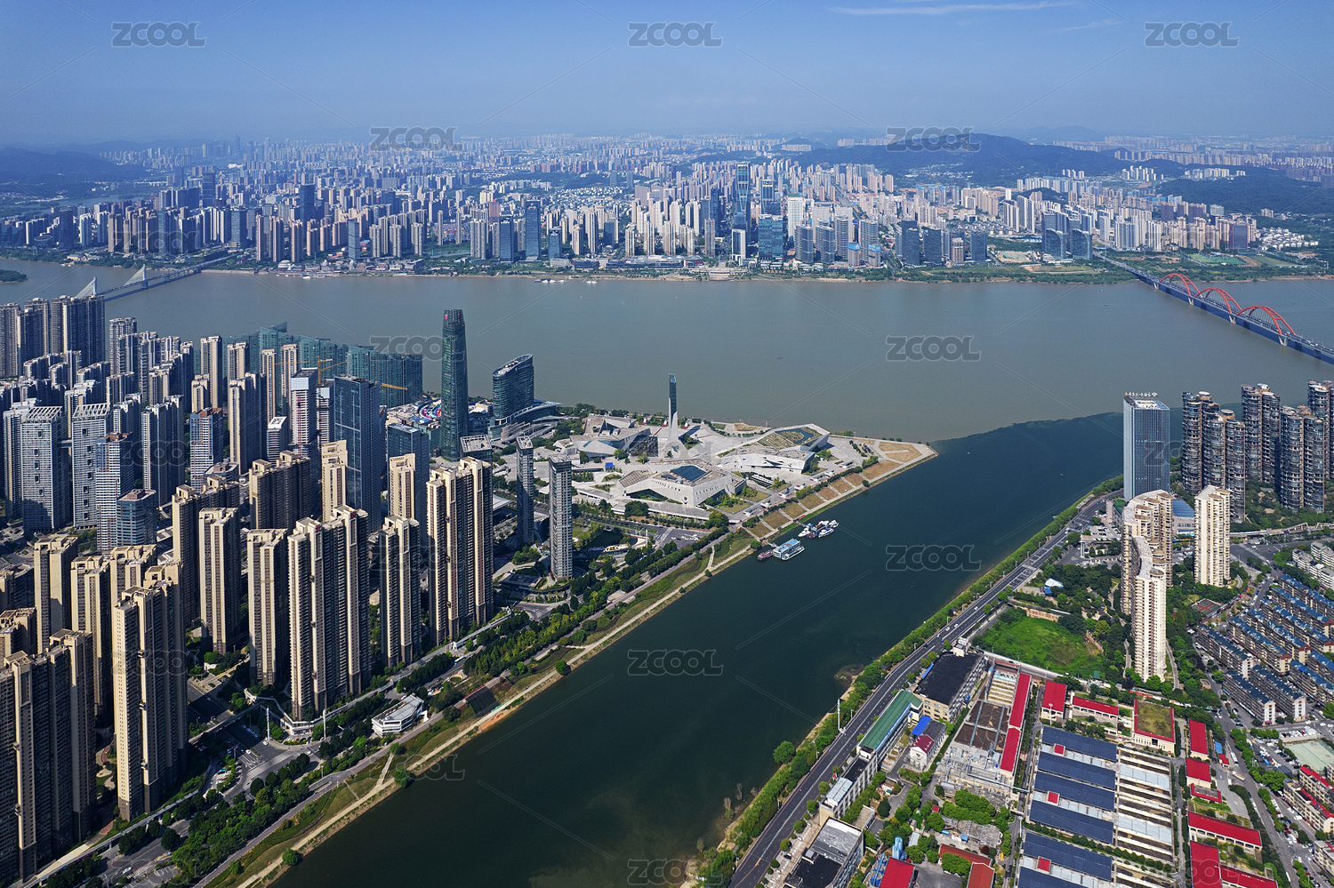 中国湖南长沙湘江北辰三角洲航拍城市风光