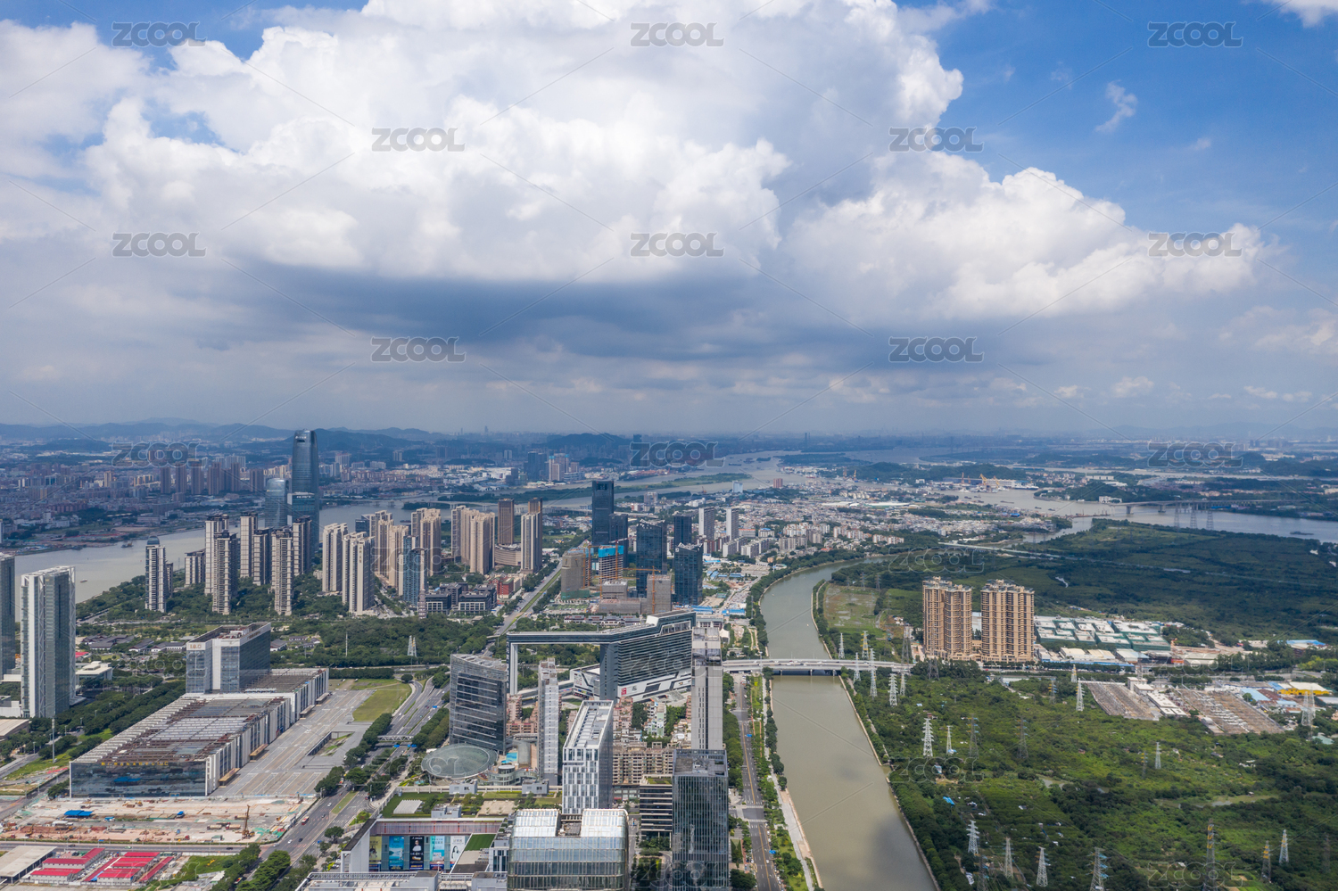 中国广东广州珠江两岸荔湾白鹅潭CBD城市天际线