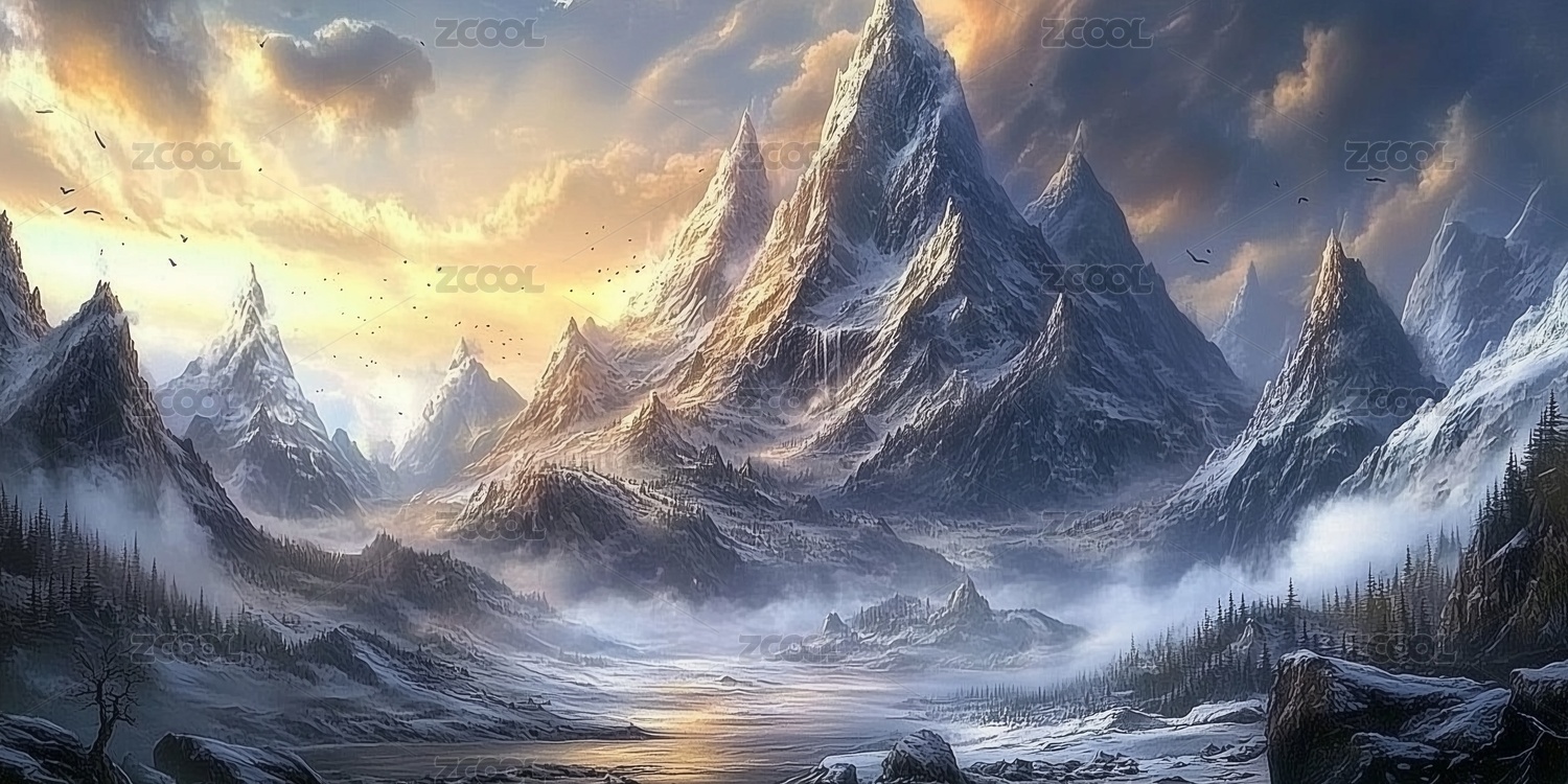 码科技梦幻雪山风景横版海报墙纸网页端背景