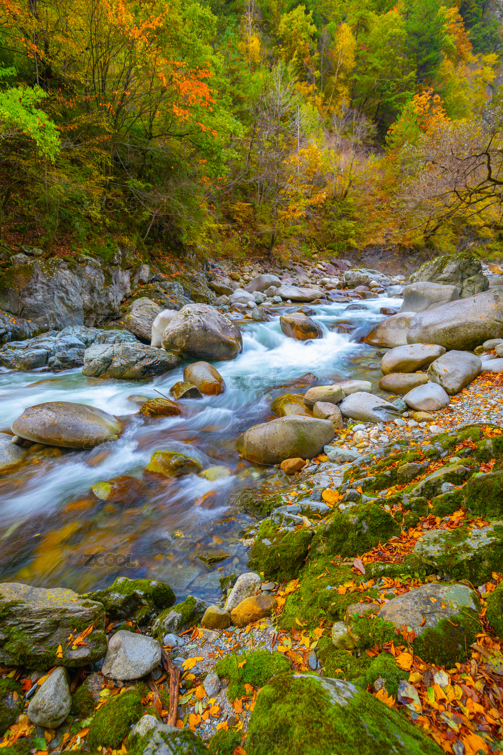 光影,地质,大箭沟,太白山,岩石,彩石,慢门,枫叶,河流,河谷