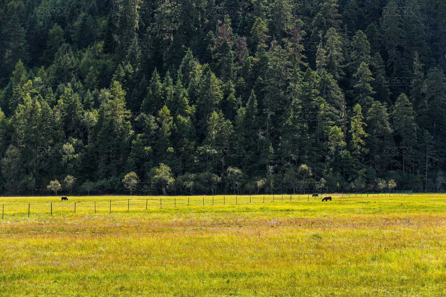 中国西藏林芝市鲁朗小镇高山牧场草原风景