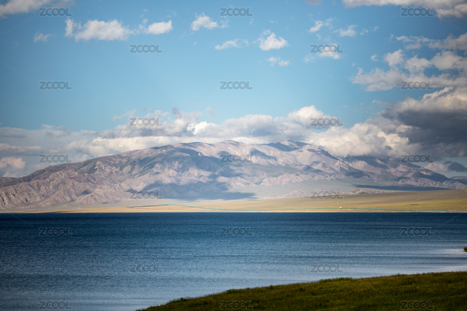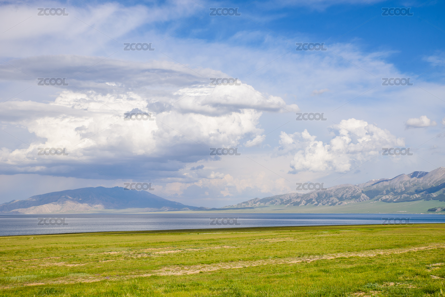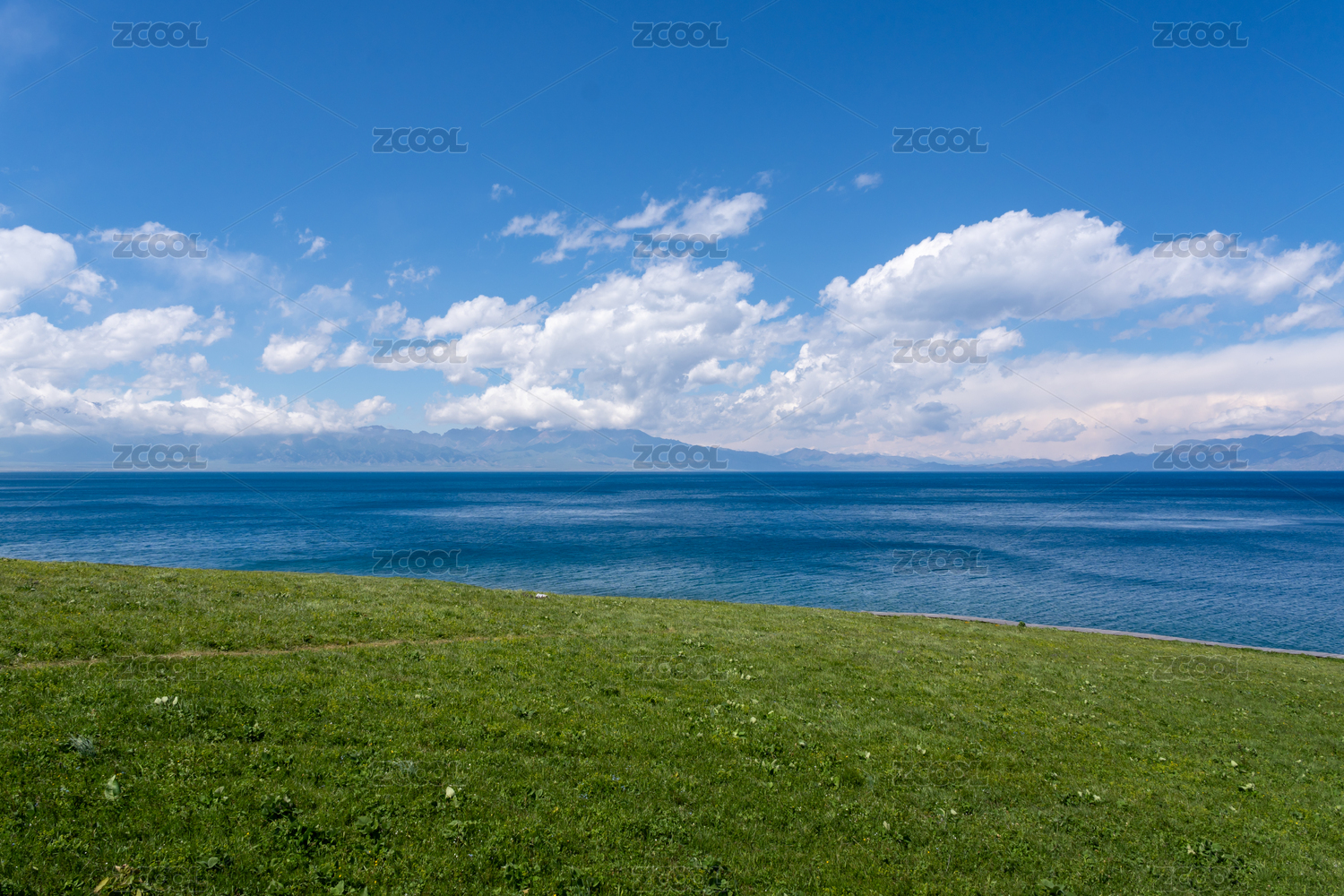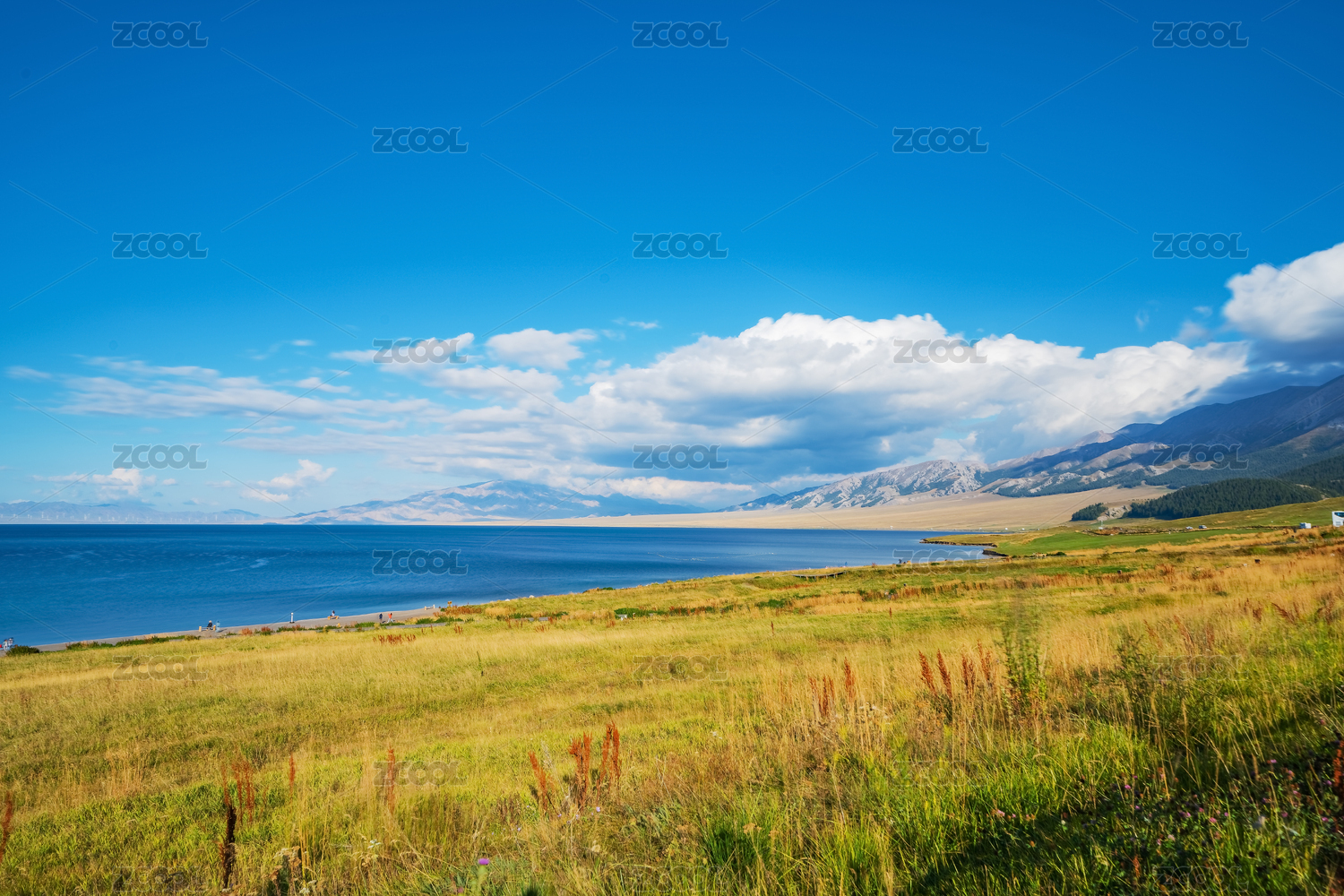 赛里木湖蓝天白云青草