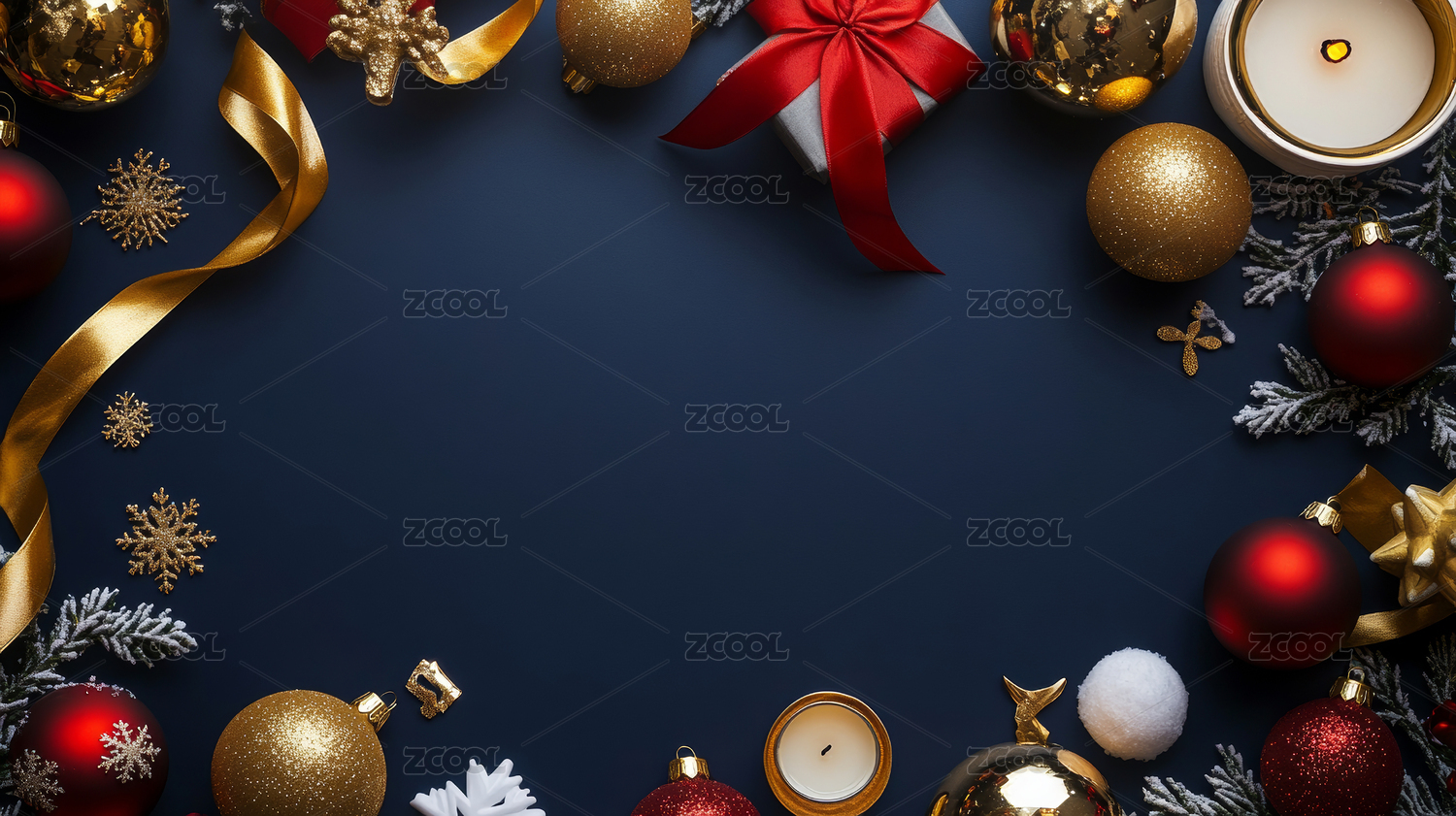 正上方蓝色背景的圣诞装饰照片