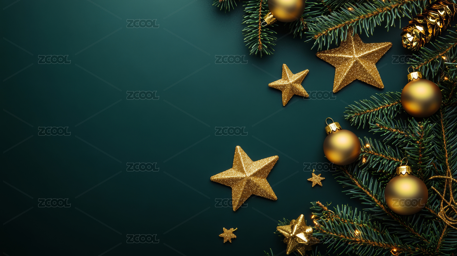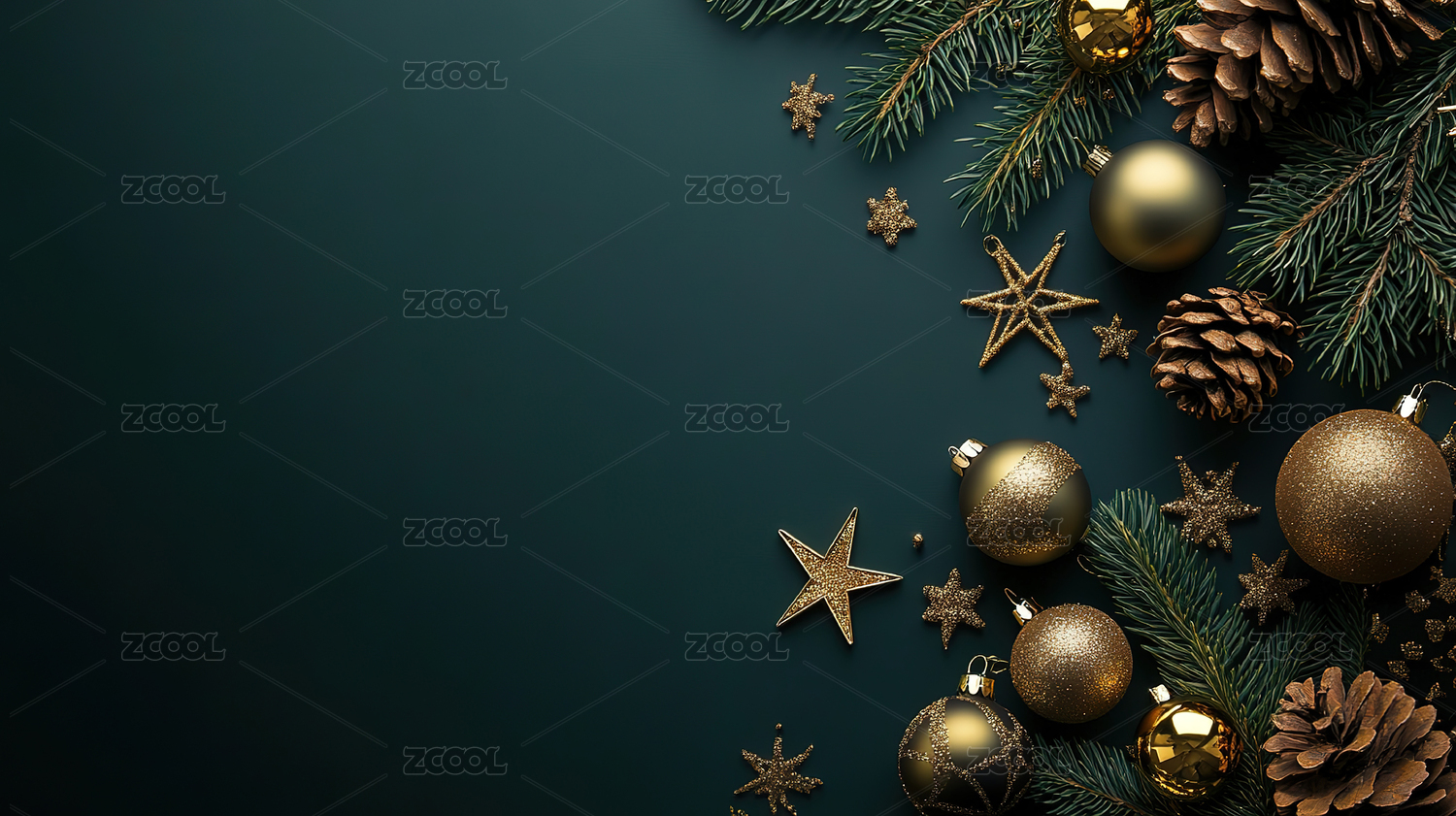 圣诞装饰品点缀绿色背景