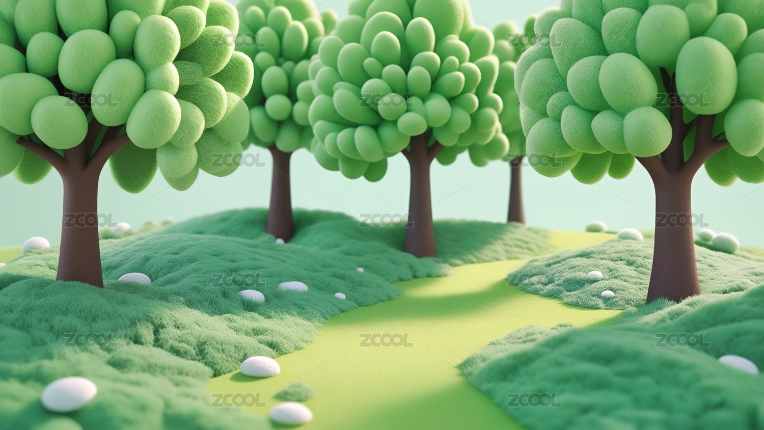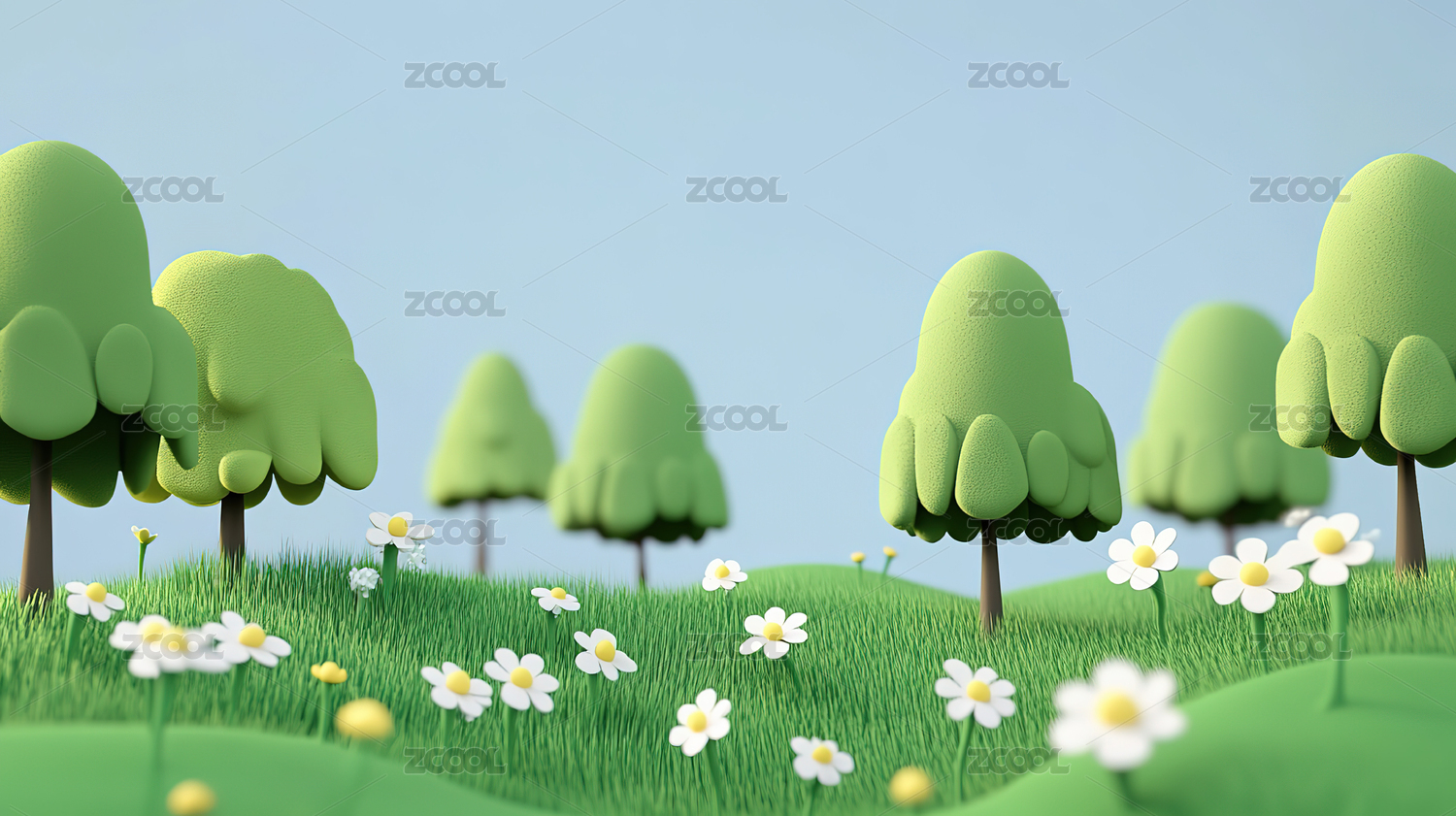 清新卡通绿树蓝天