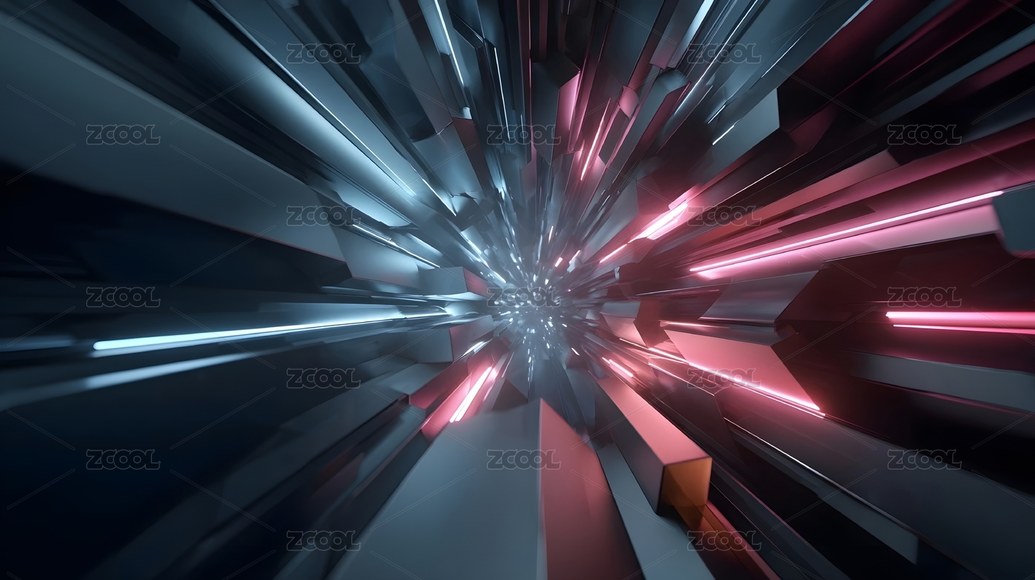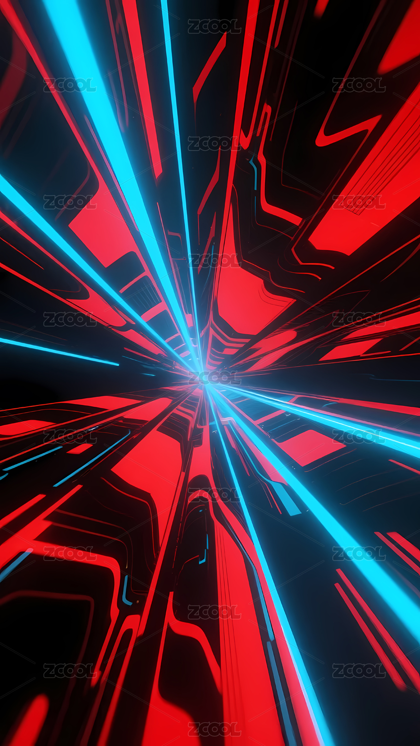 蓝红光束放射隧道