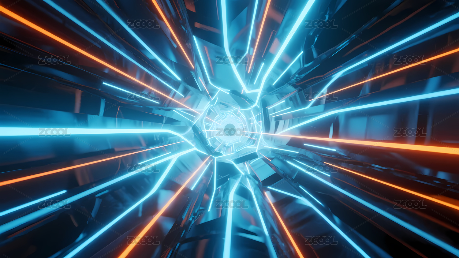 蓝橙光线未来隧道
