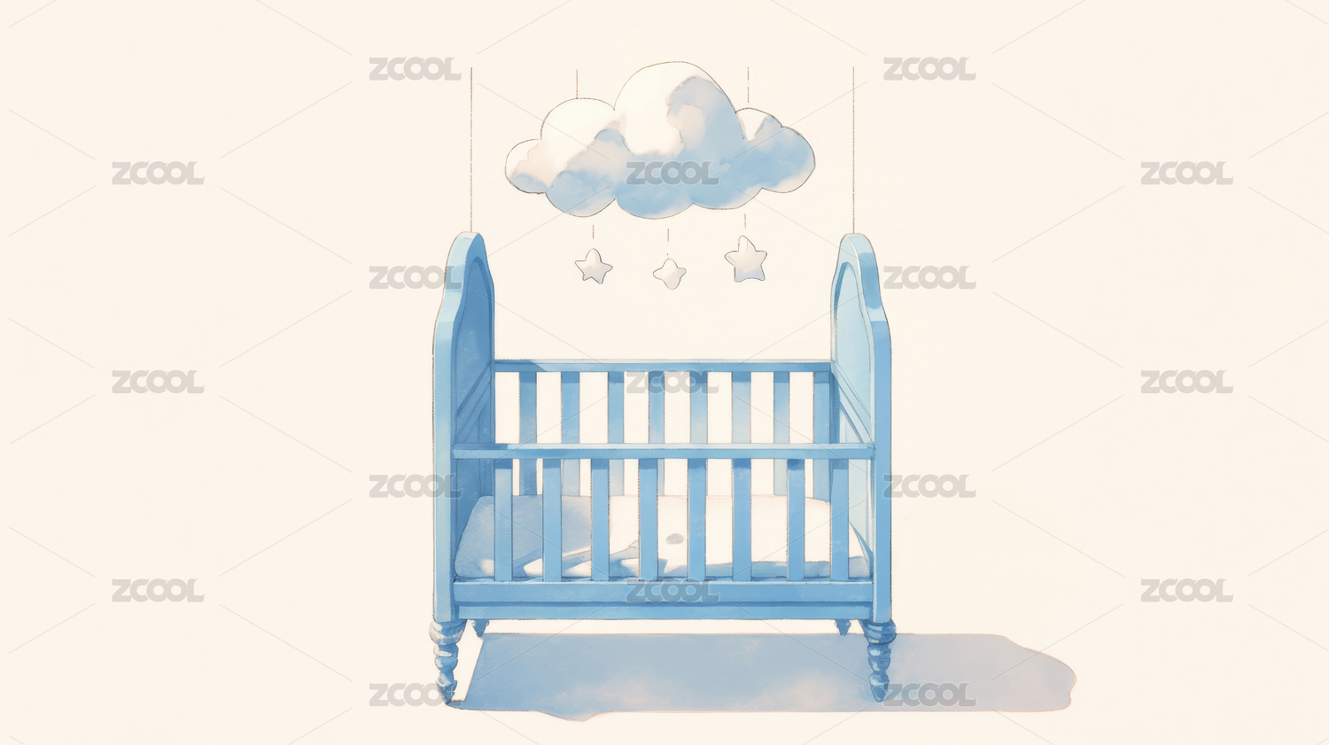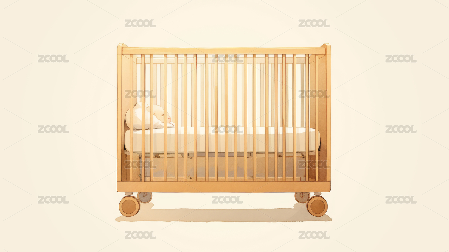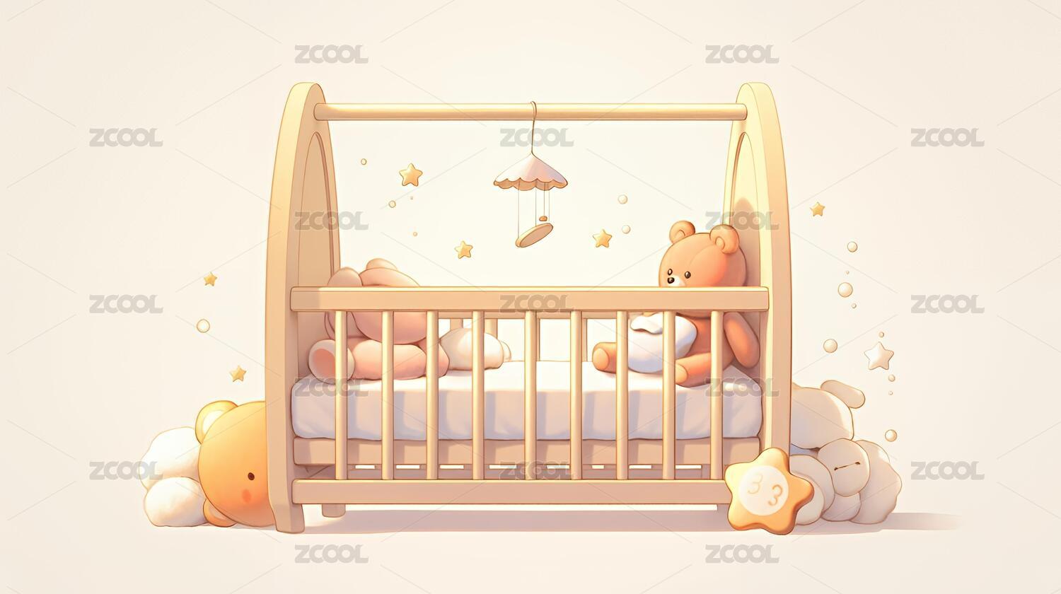 卡通,插画,婴儿床,婴儿,家居,儿童房,卧室,温馨,舒适,游戏