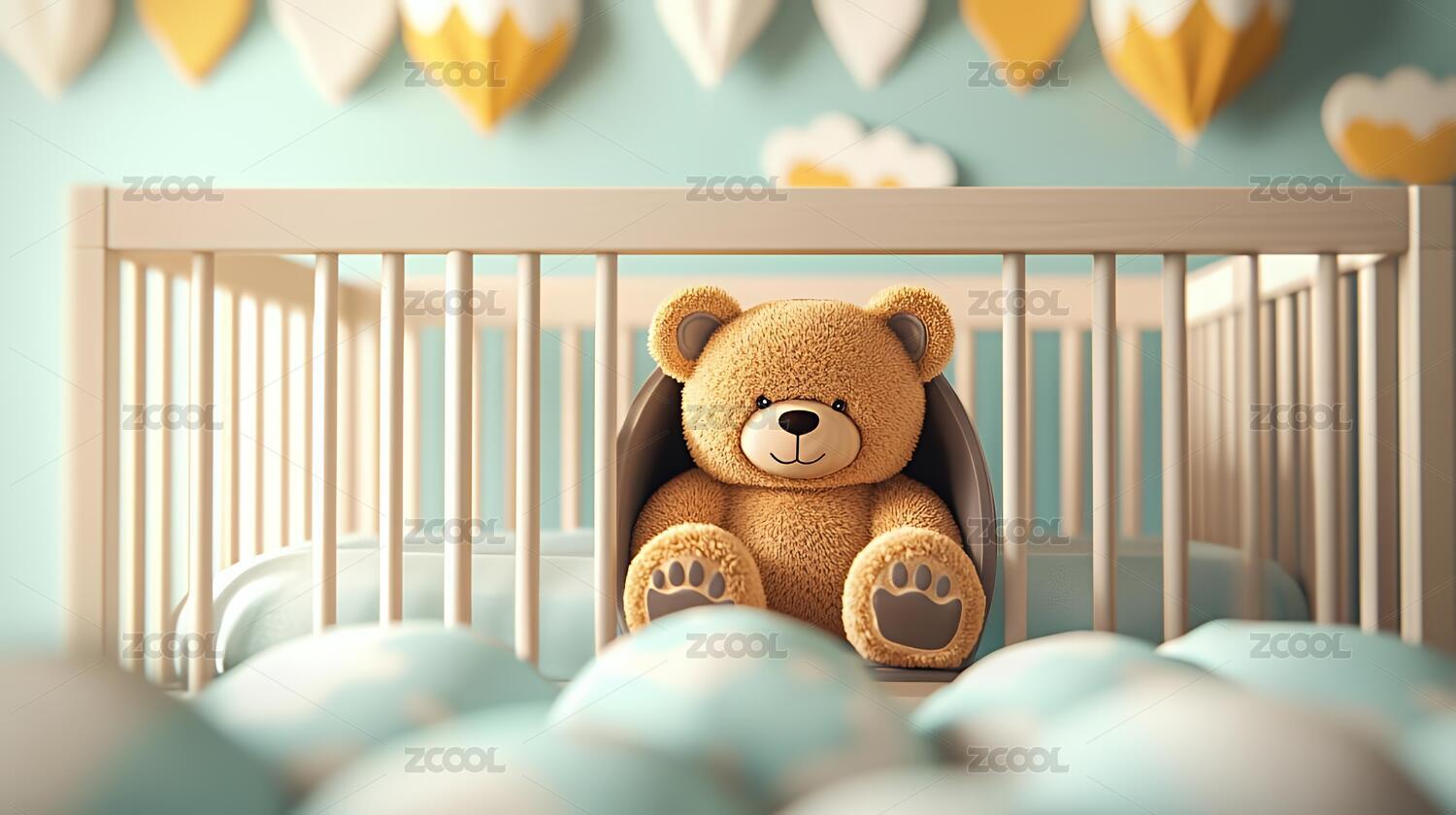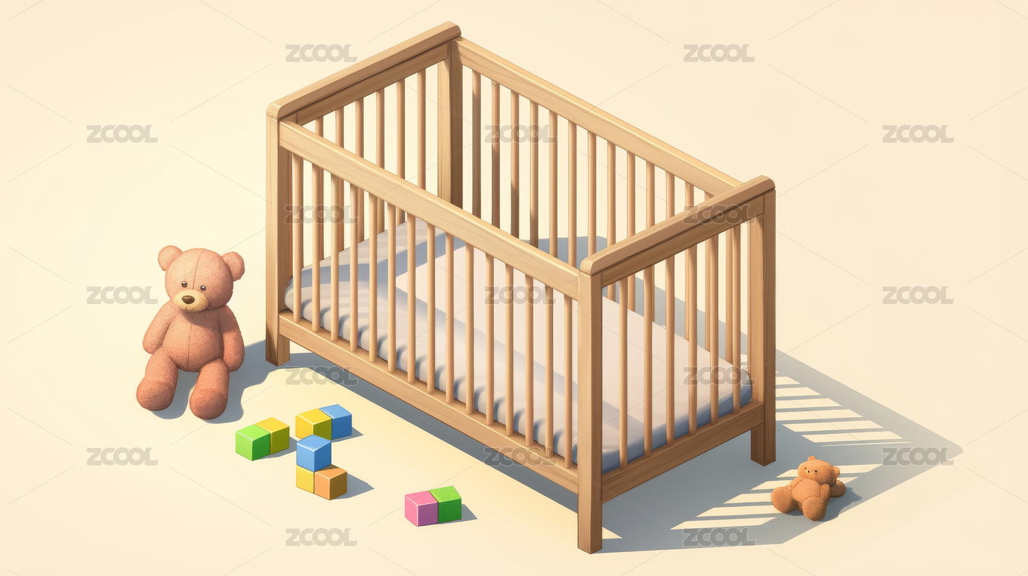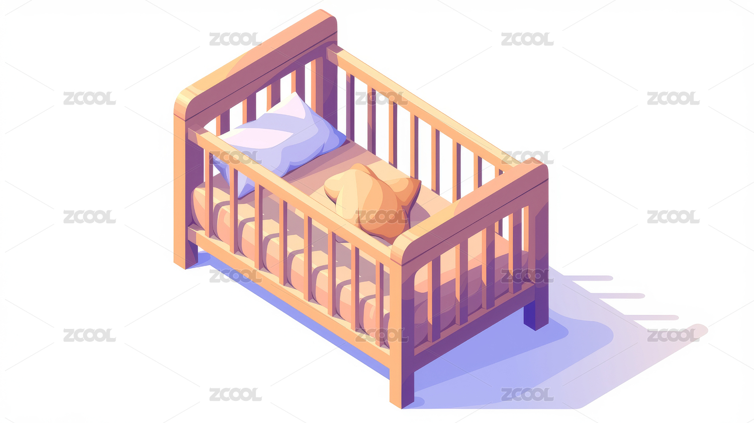 卡通,插画,婴儿床,婴儿,家居,儿童房,卧室,温馨,舒适,游戏