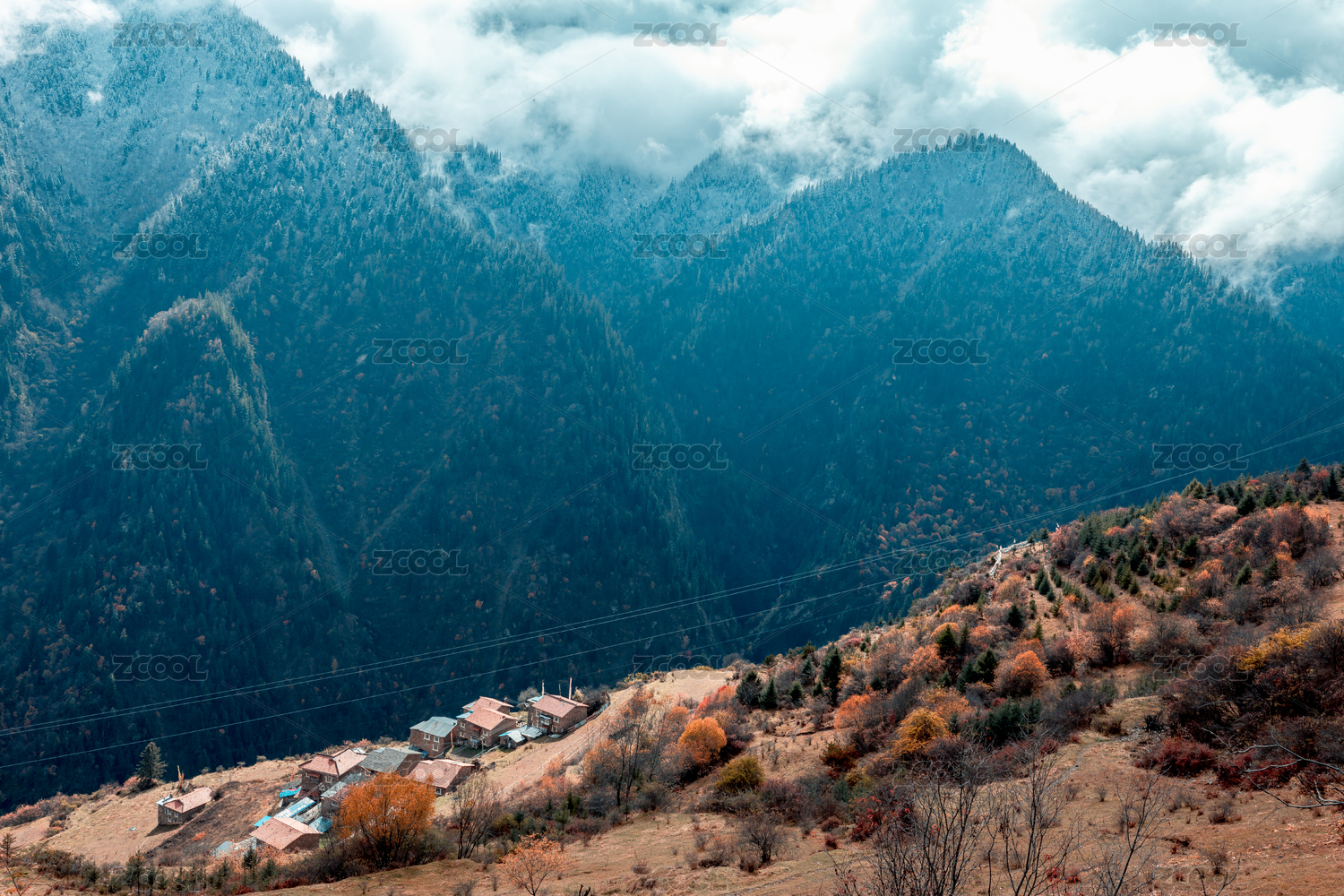 中国西藏昌都八宿来古冰川冰盖下村庄农田