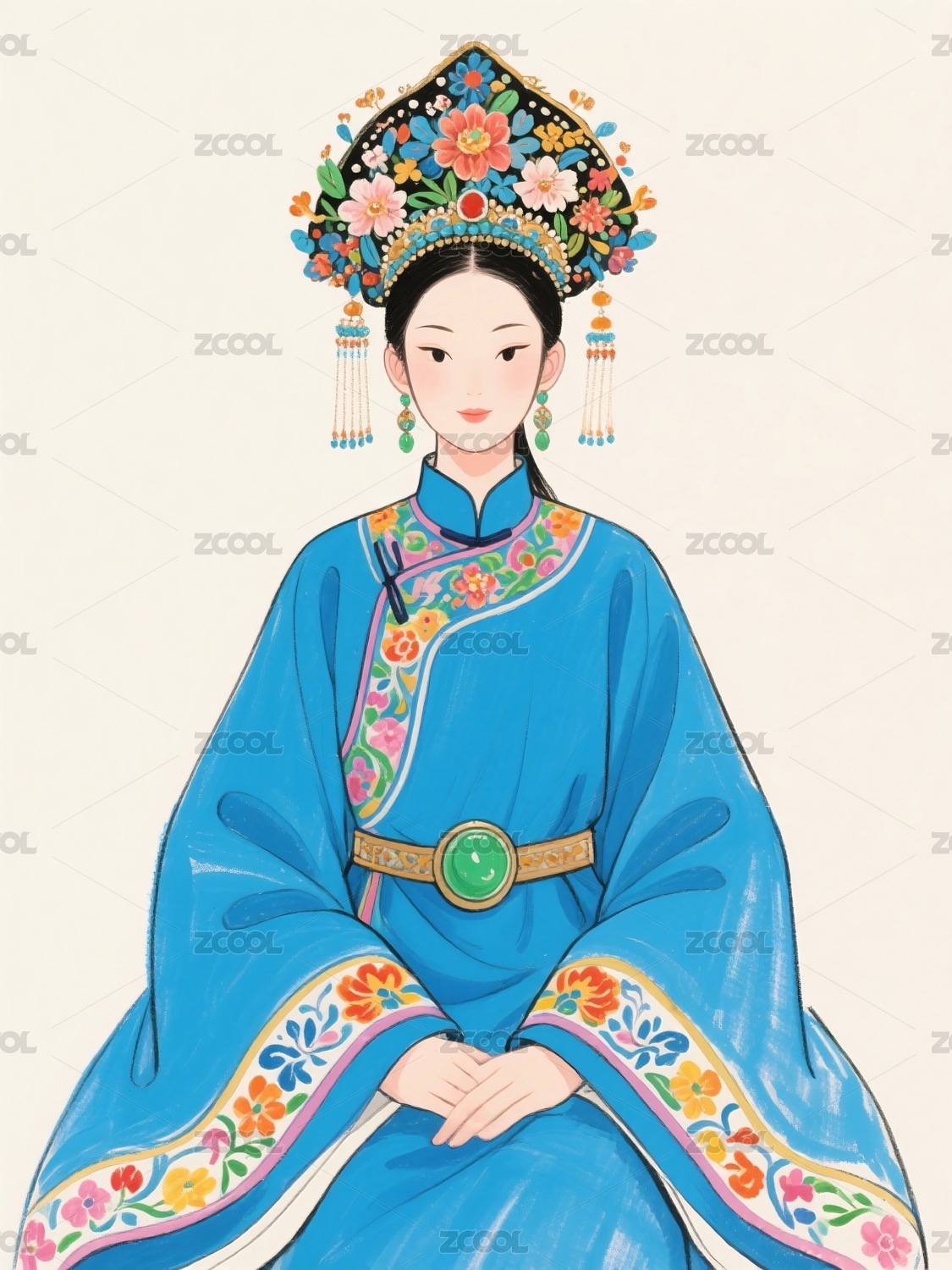 皇家,服饰,蓝色,金色,插画,龙,装饰,礼服,汉服,手绘