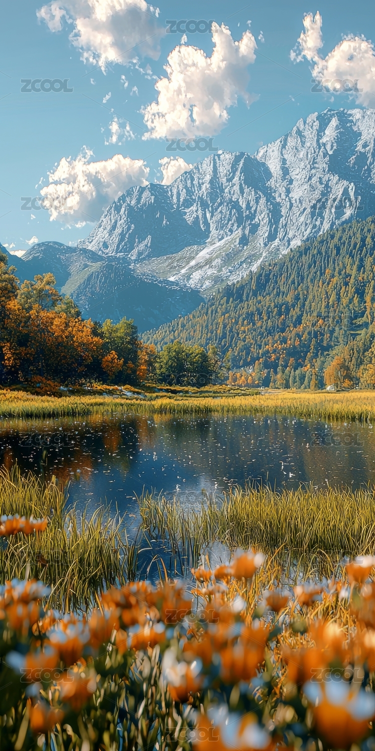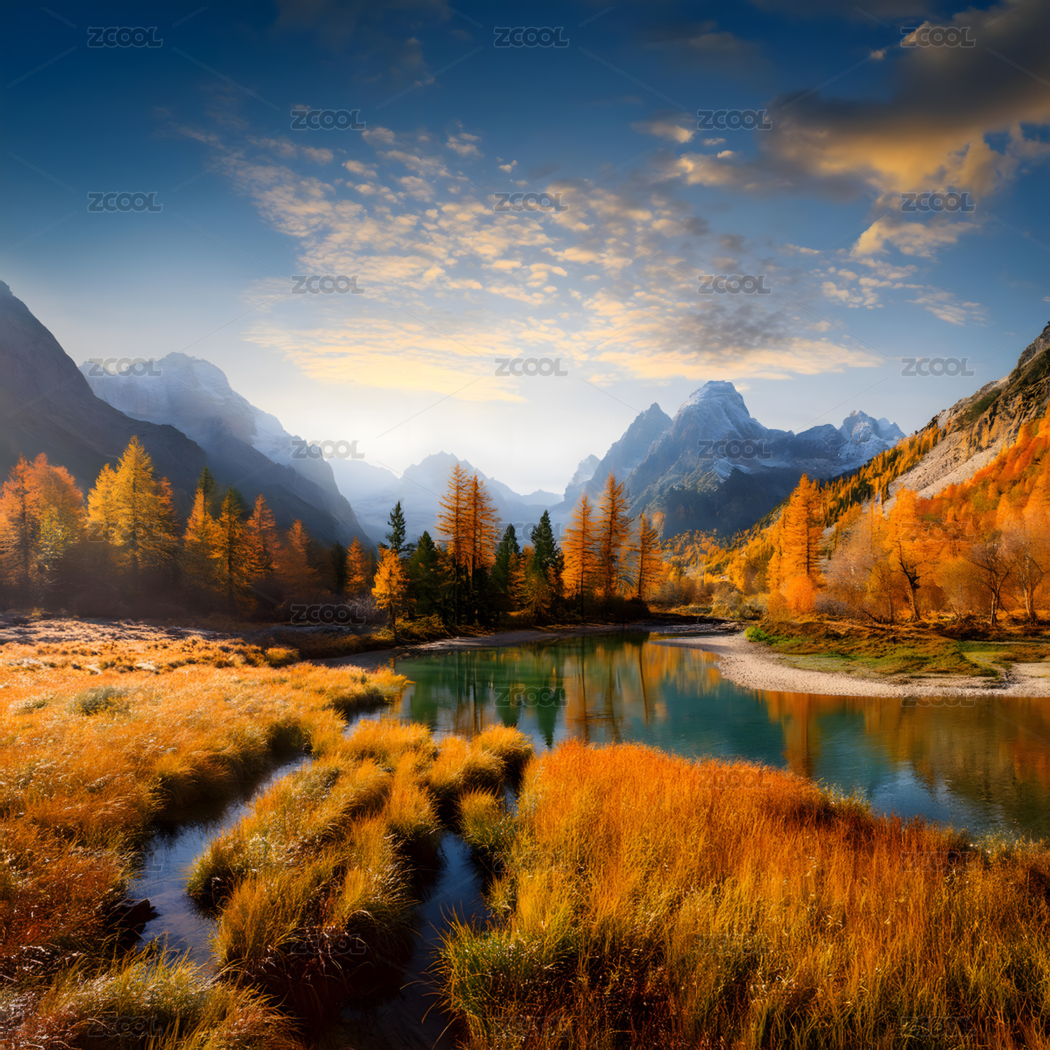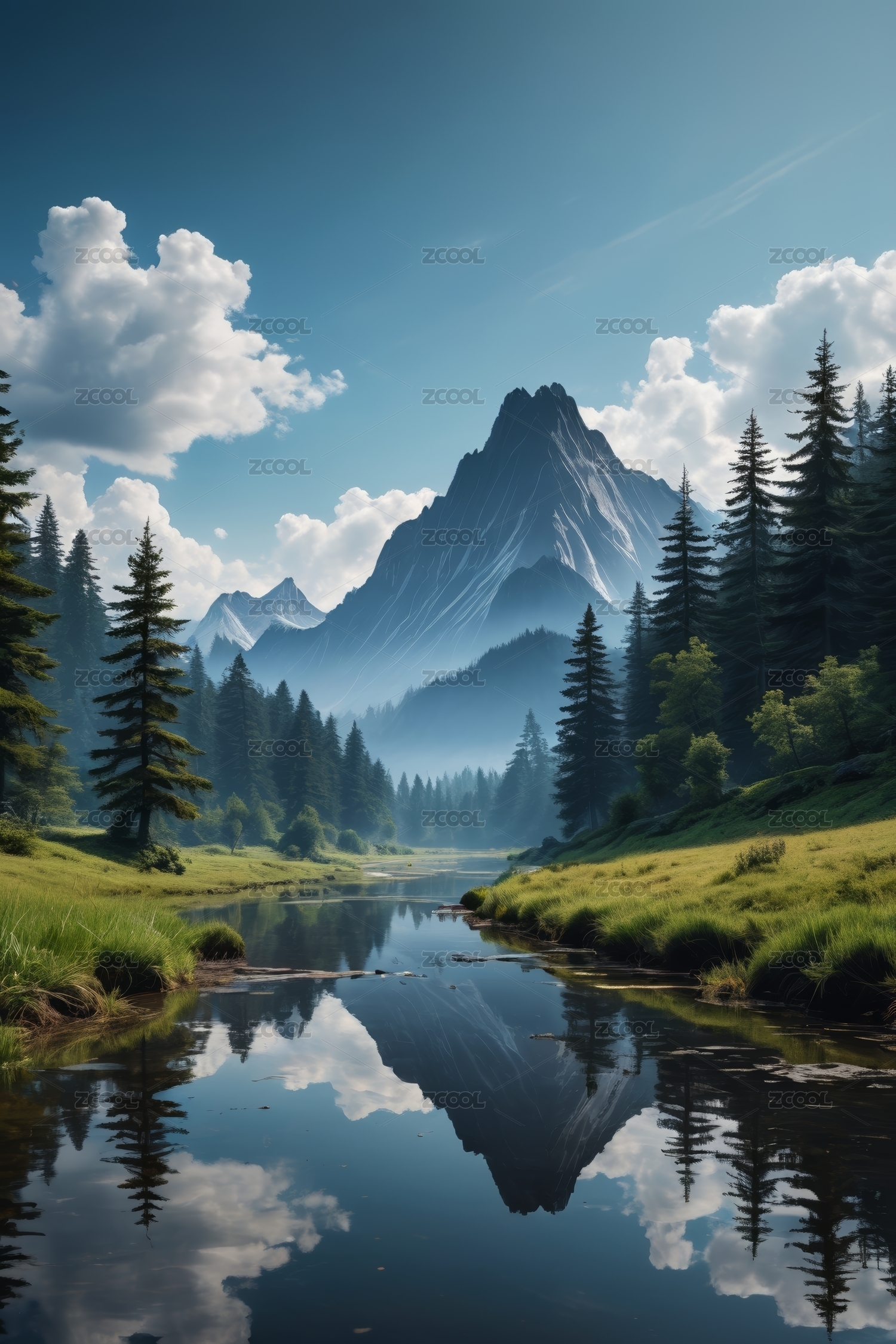 宁静山水间的绿色牧歌 溪流与草甸的自然交