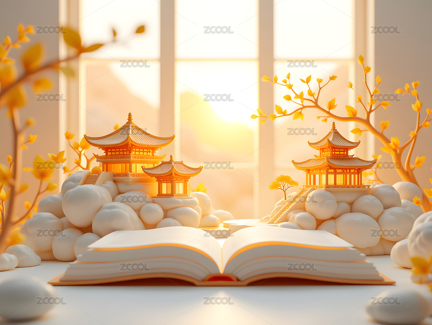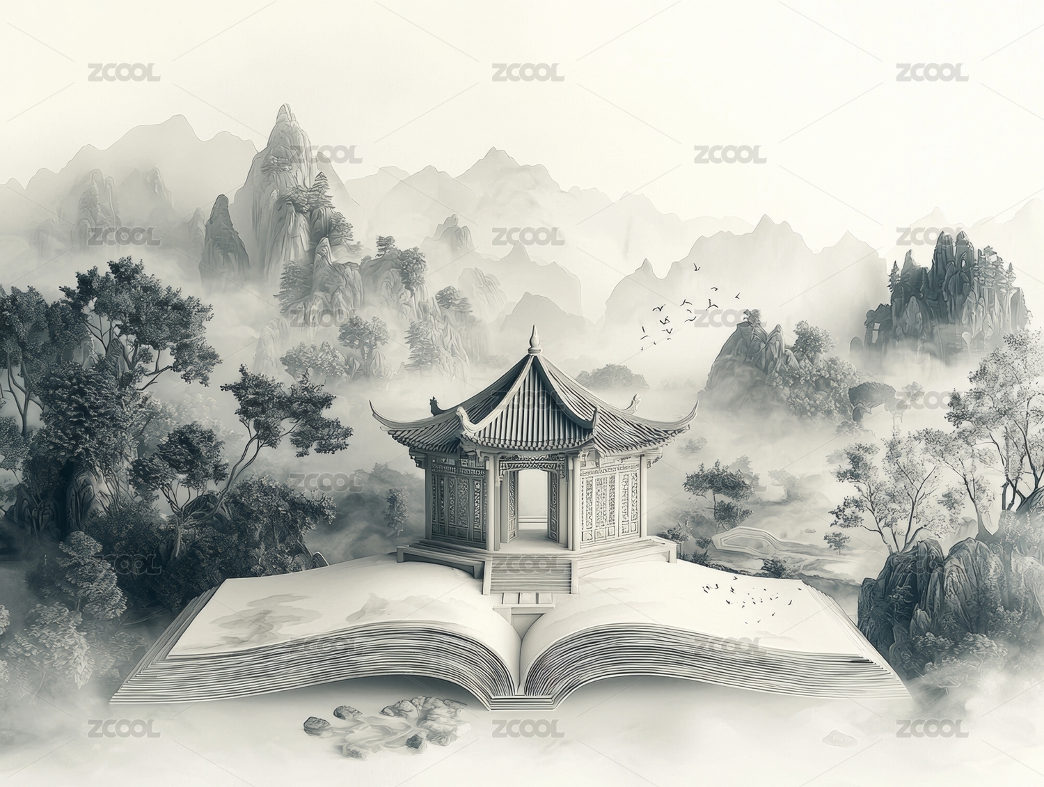 纸艺, 书籍, 亭台, 建筑, 山水, 白色, 工艺, 艺术, 水墨, 山川