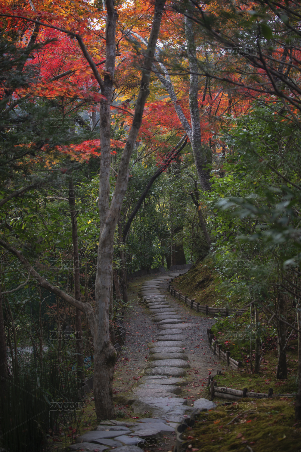 日本京都岚山一条宁静的石阶小径