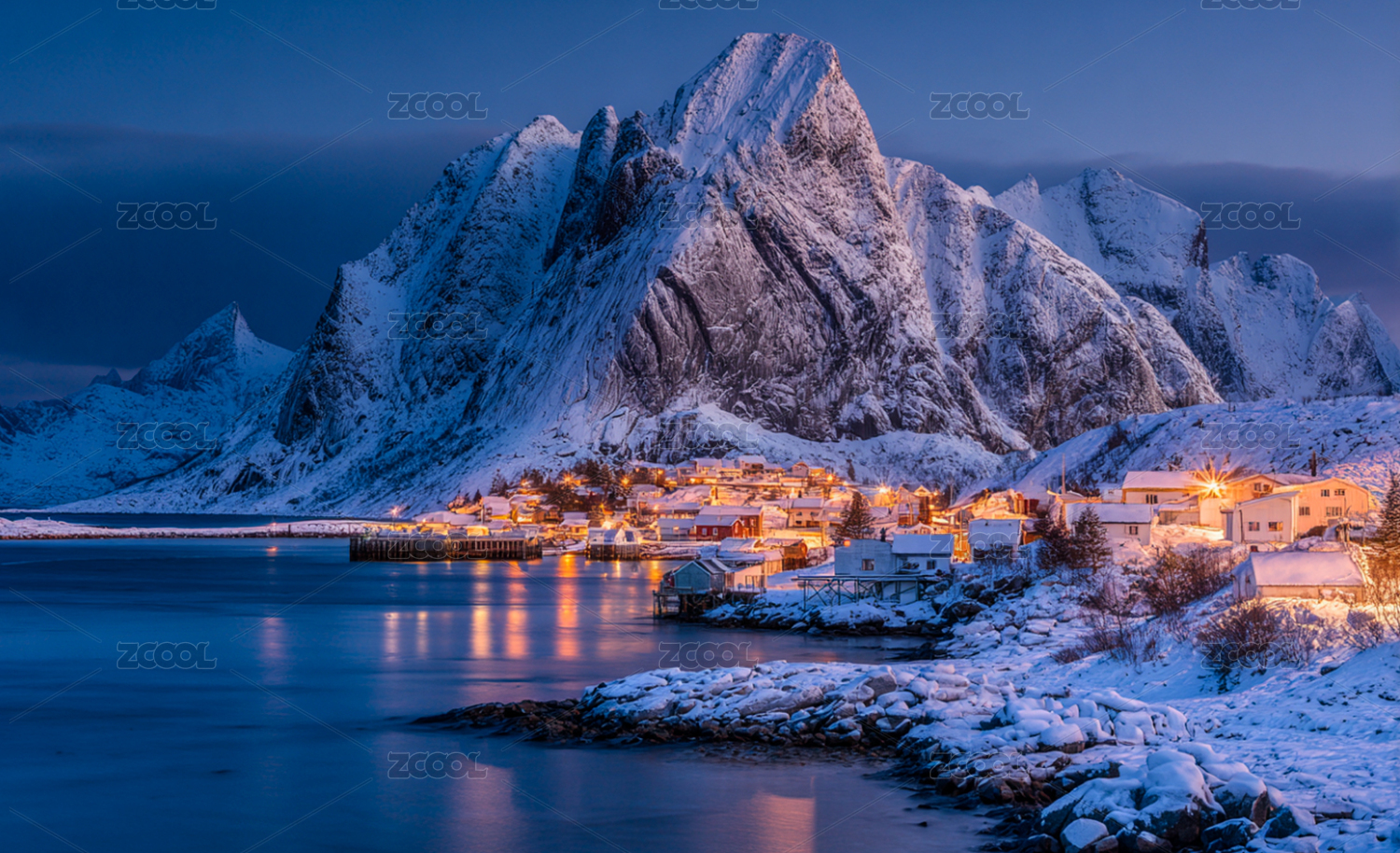 挪威罗弗敦群岛雷纳小镇冬季自然风景