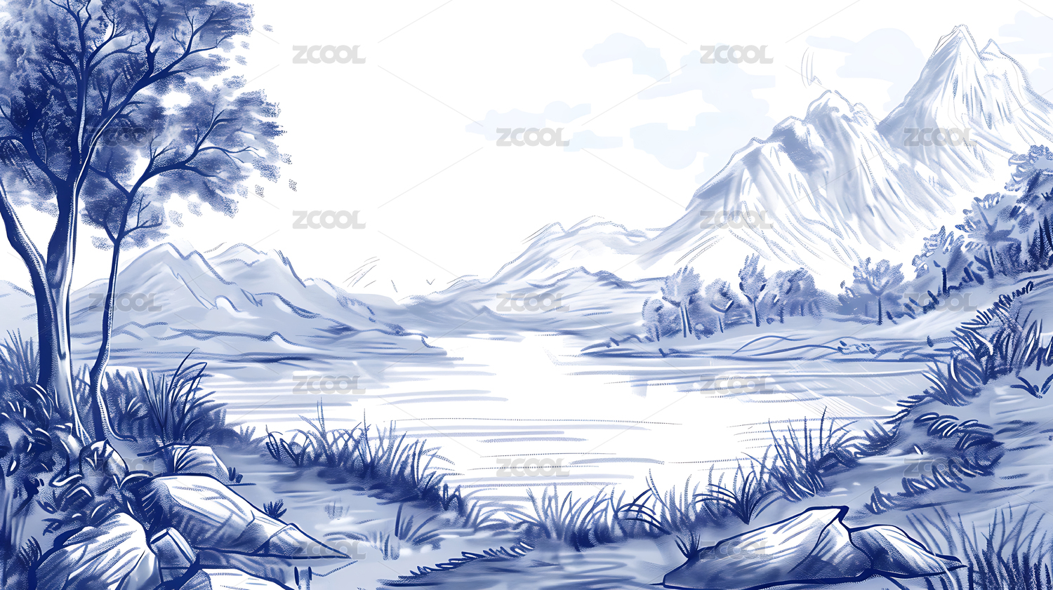 线稿,风景,插画,版画,黑白,线条,手稿,自然,风光