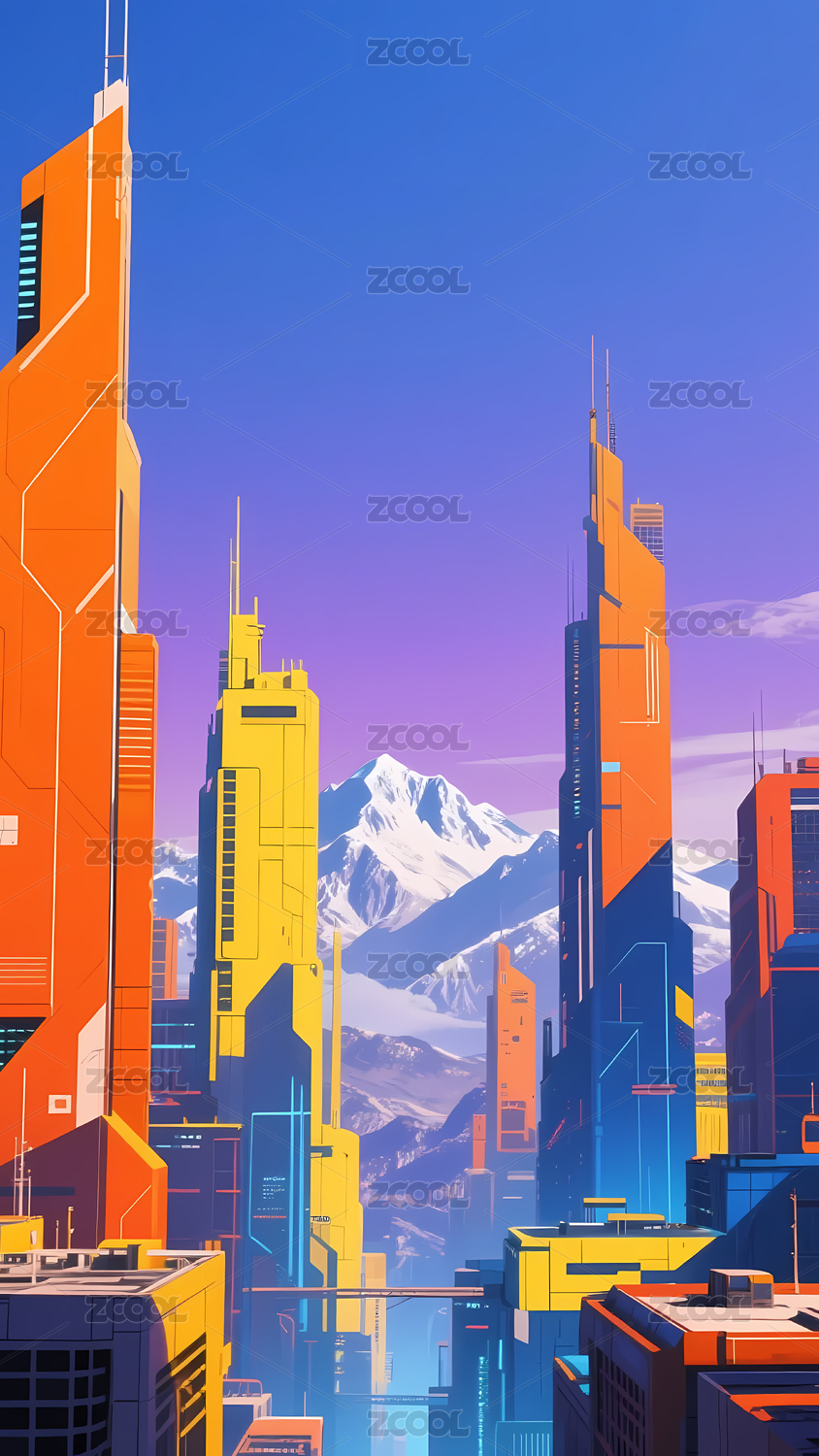 科幻橙蓝霓虹高楼