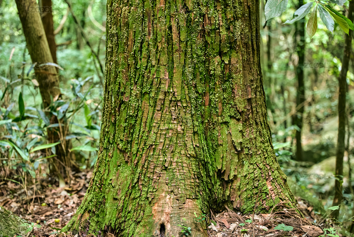 茂密森林中的粗壮树木