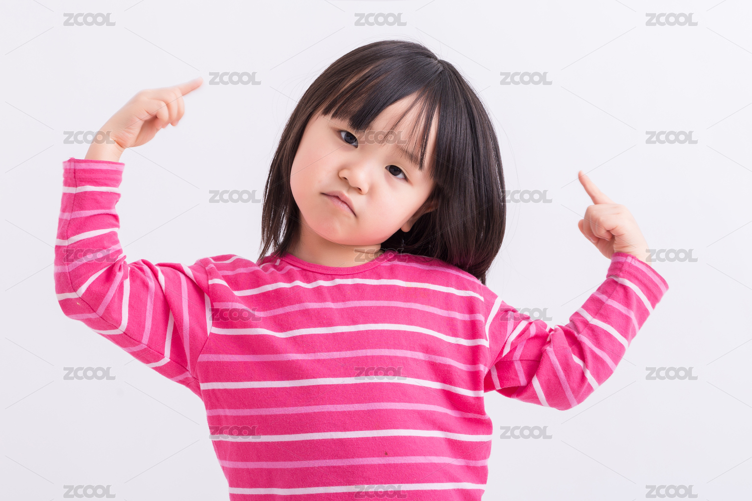 粉色背景前举手高呼的亚洲小女孩