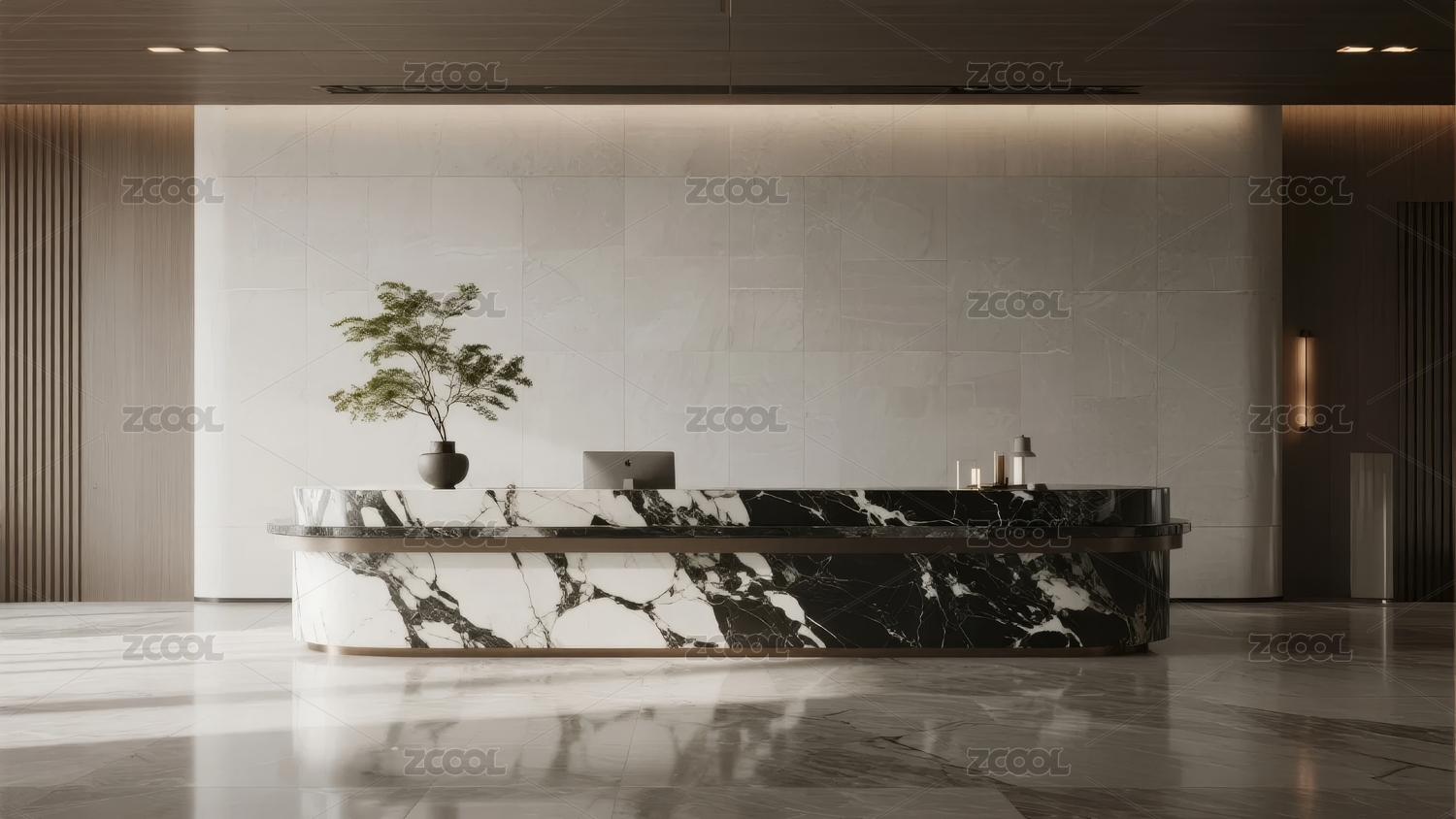 大理石墙和吊灯的现代豪华酒店大堂内部设计