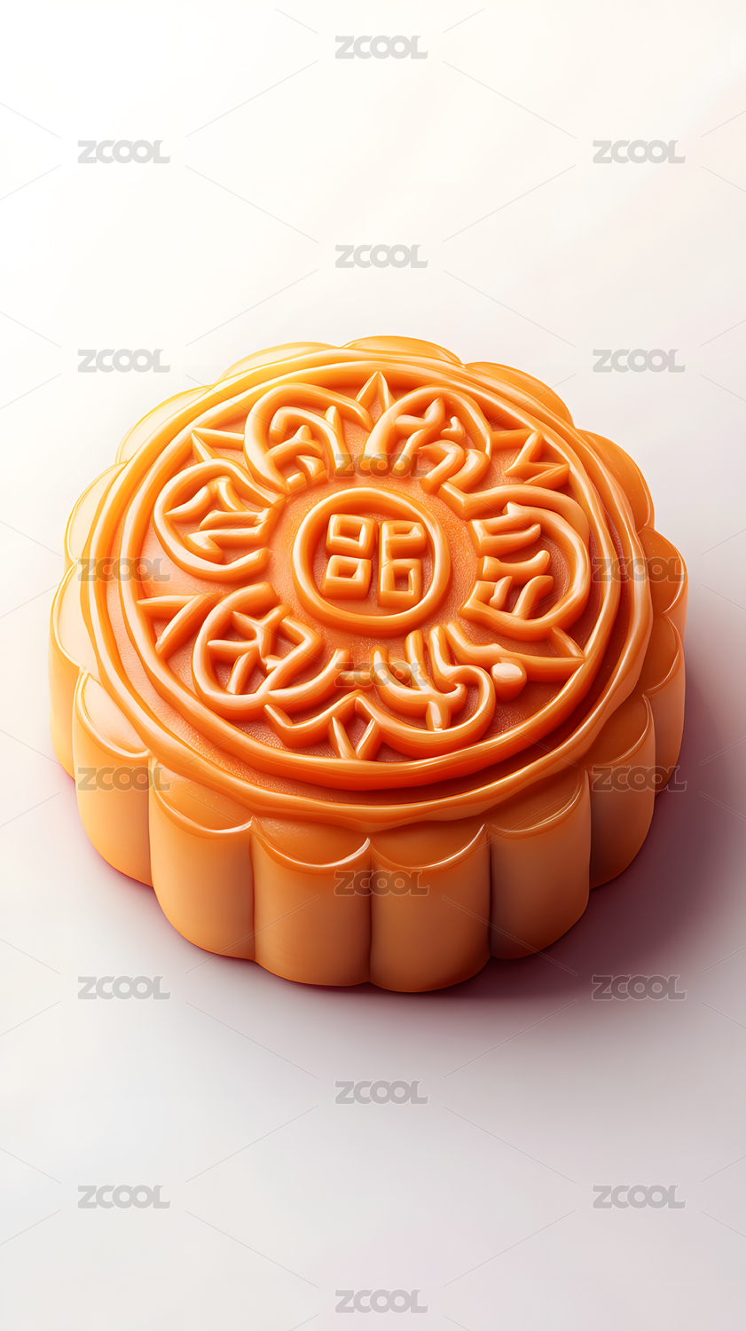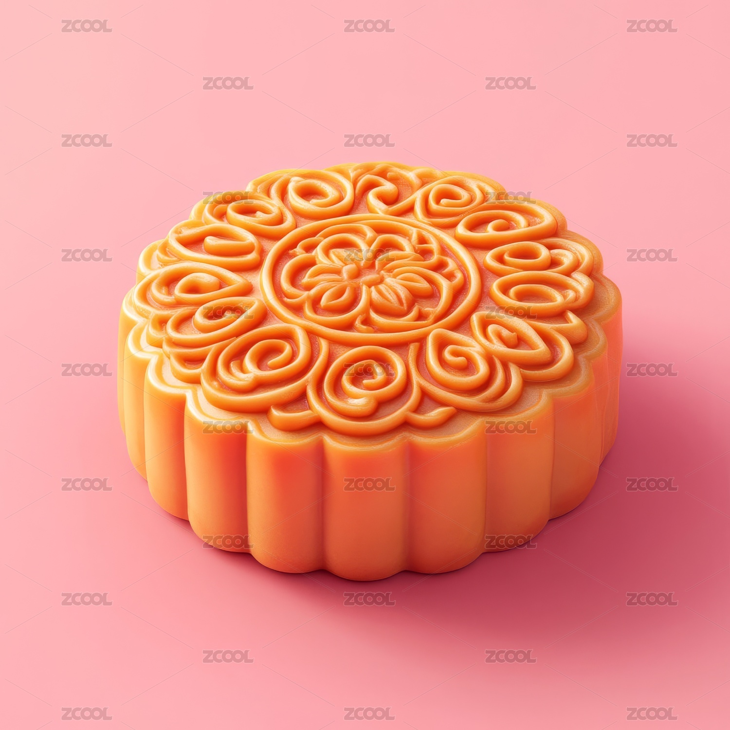 鲜橙色芒果味的冰皮月饼特写,表面光滑,放