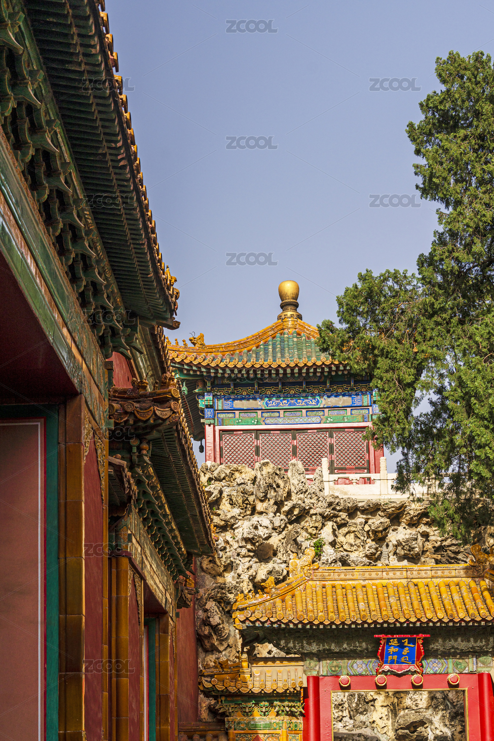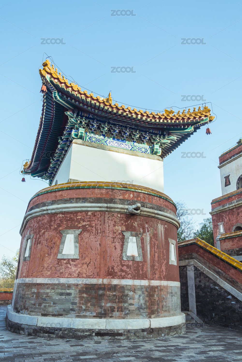 秋天的北京颐和园公园的亭台楼阁古建筑