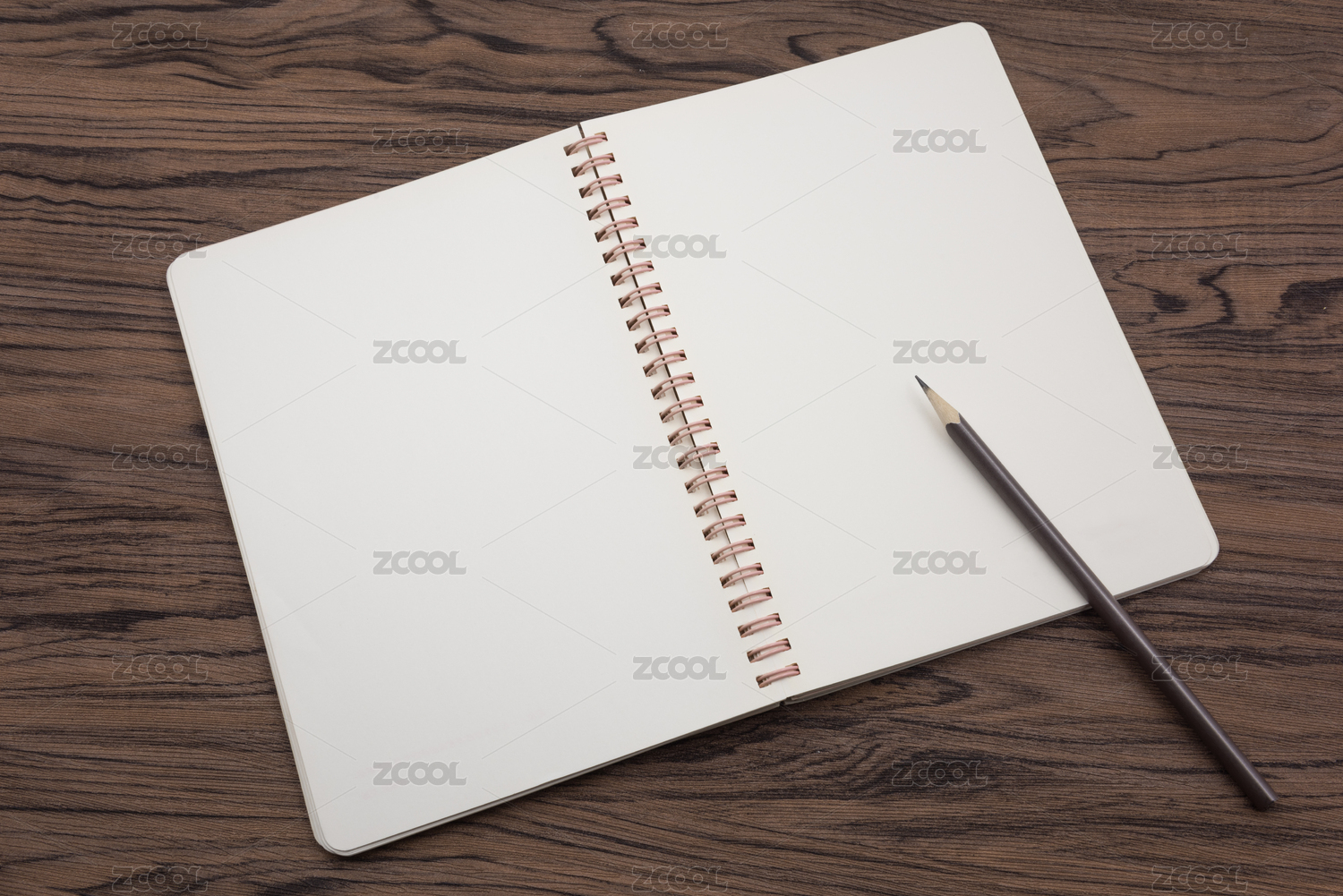 原木桌面上放着一叠白纸,旁边放着一只铅笔