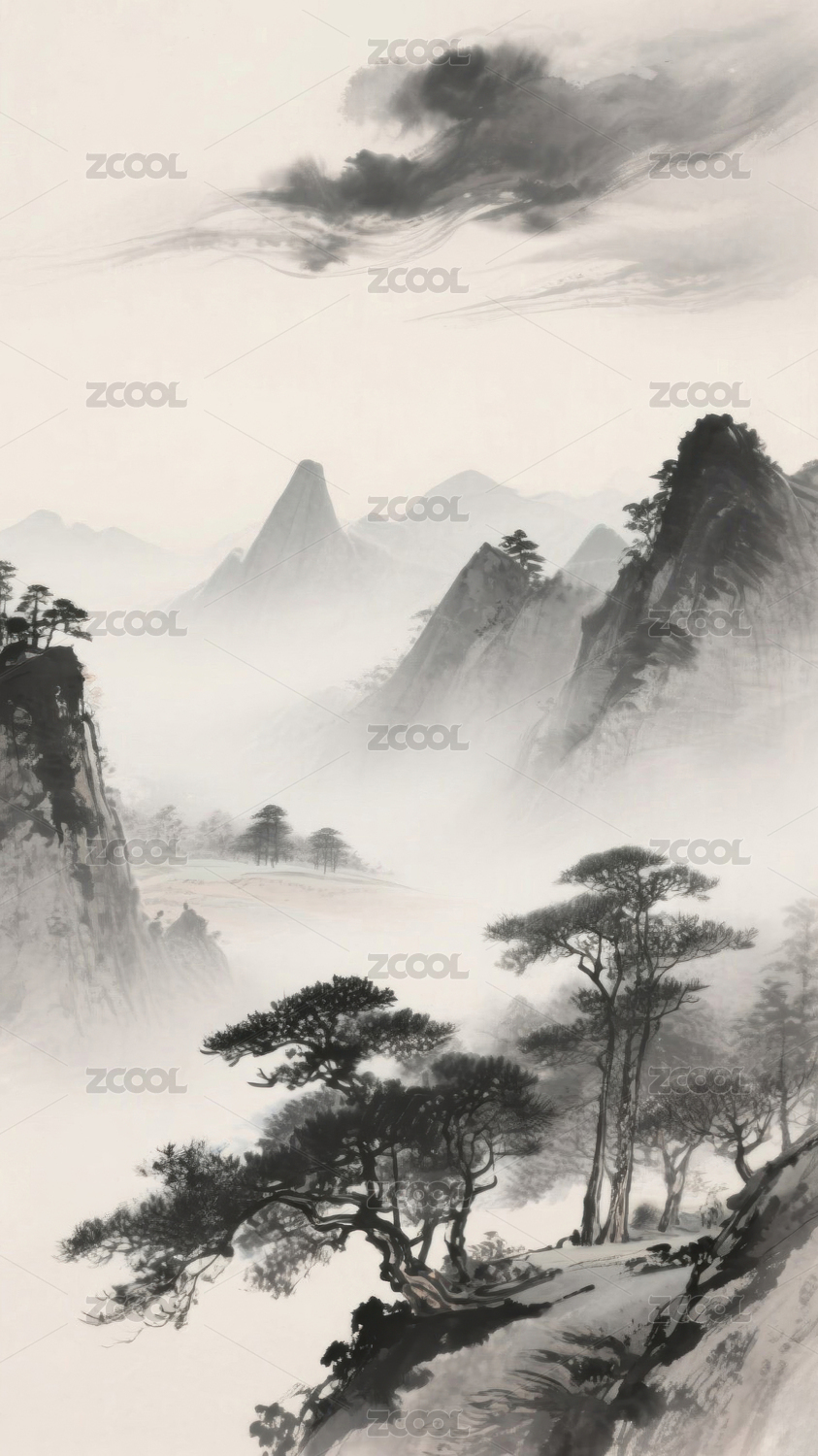 风景,高山,中国画,插画,自然,国风,中国文化,水墨画,地形,宁静