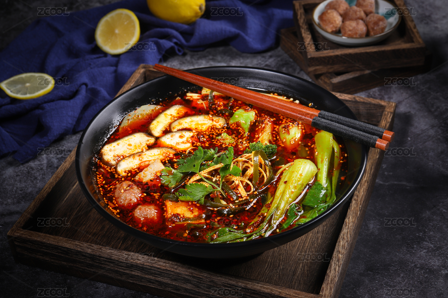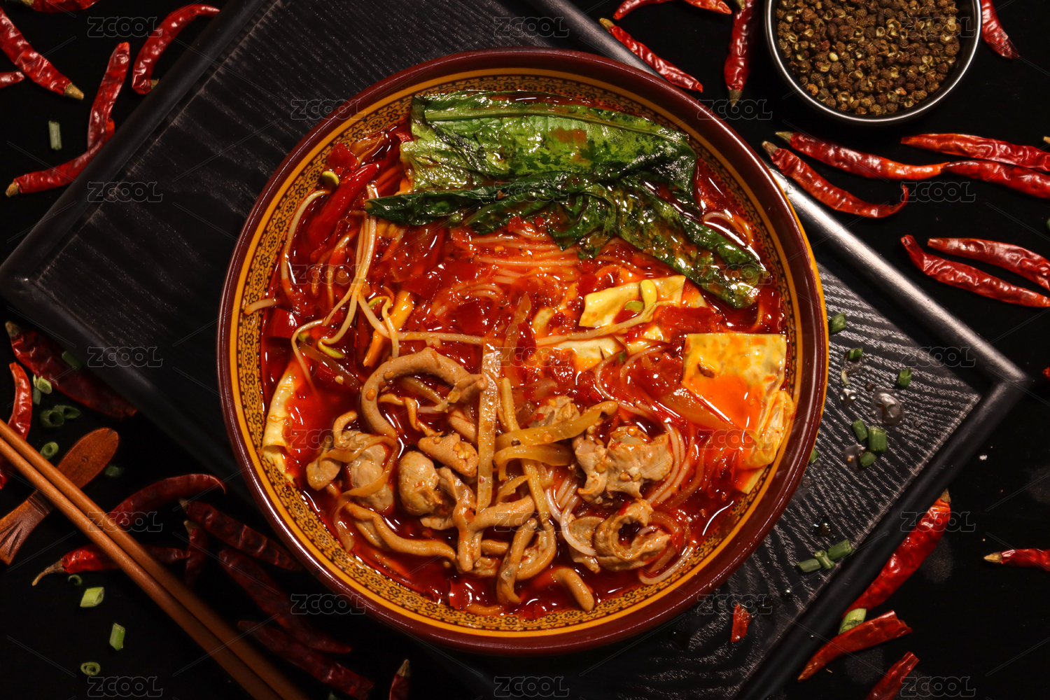 深色背景上碗里的酸辣粉