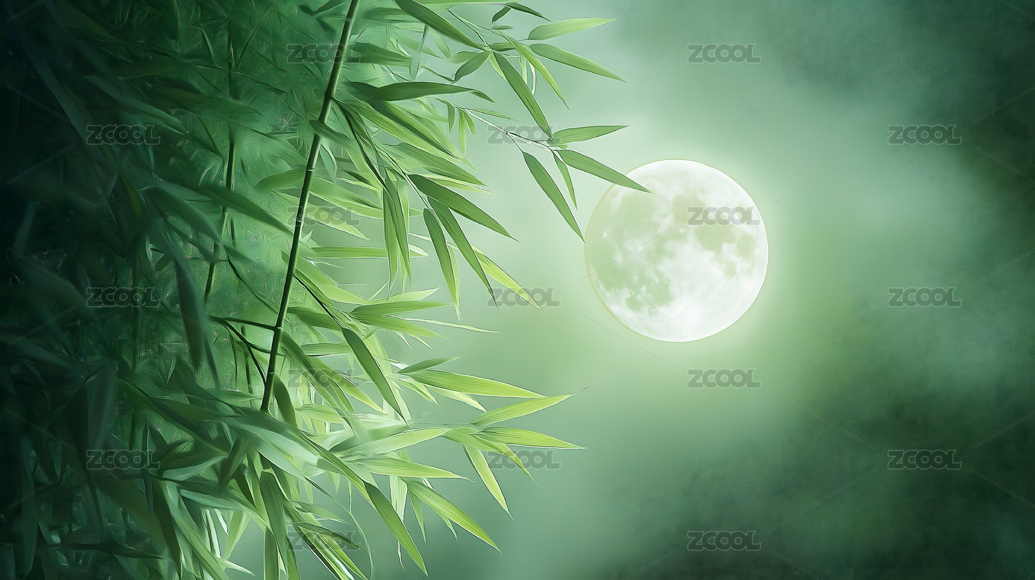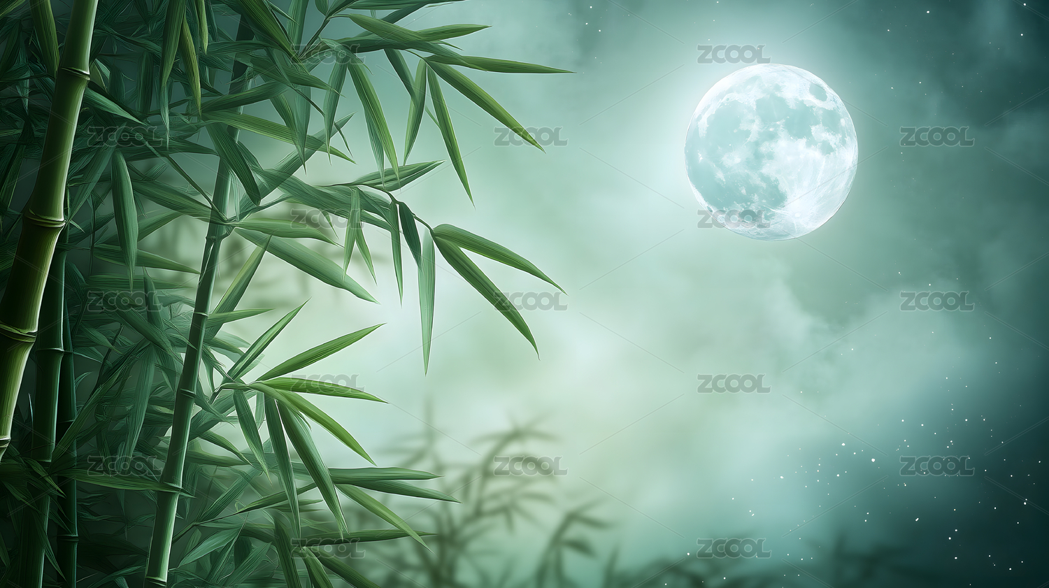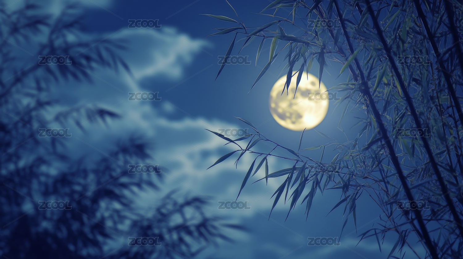 竹林满月夜景