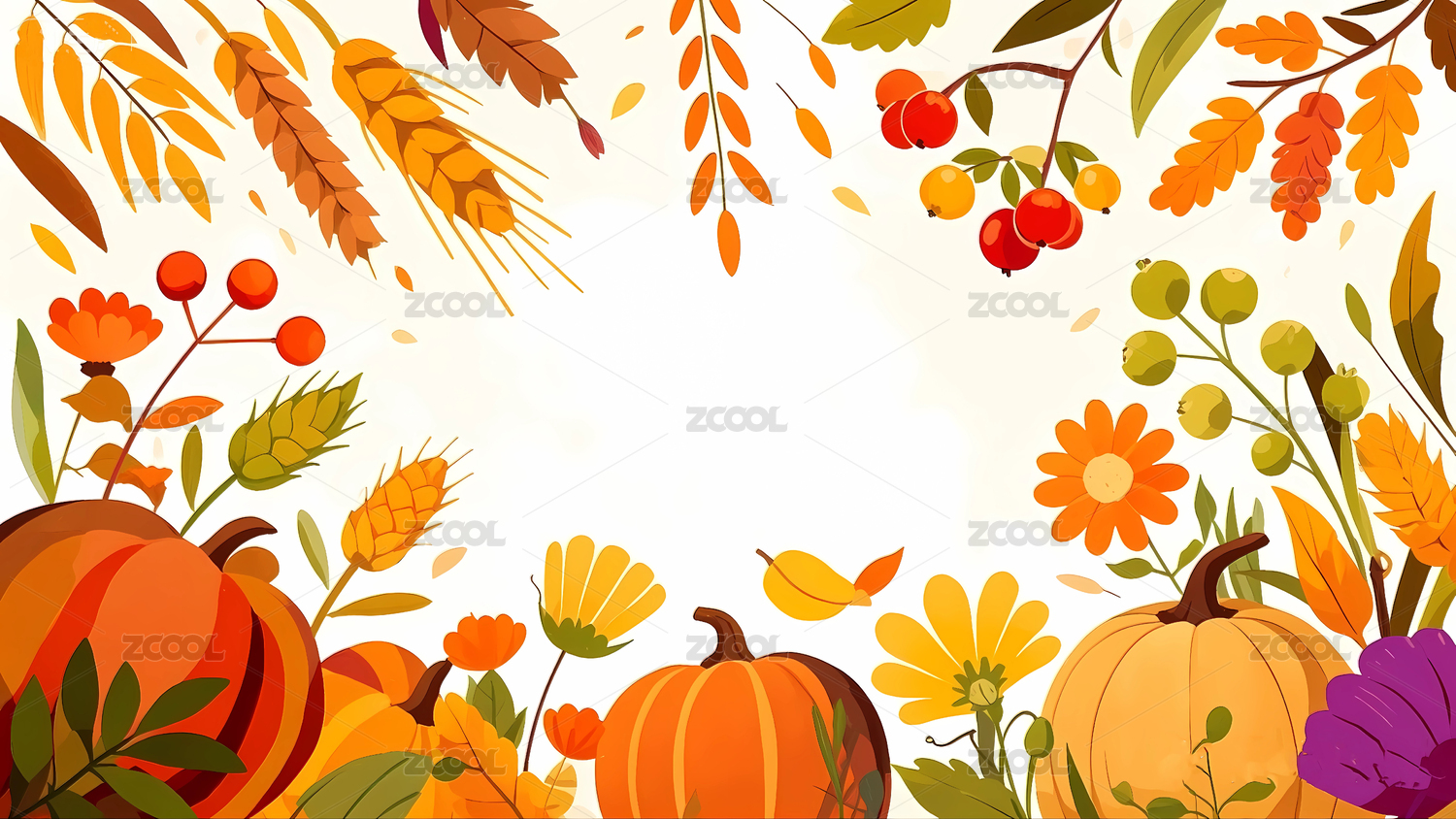 感恩节感谢南瓜秋季食物卡通扁平元素矢量插画