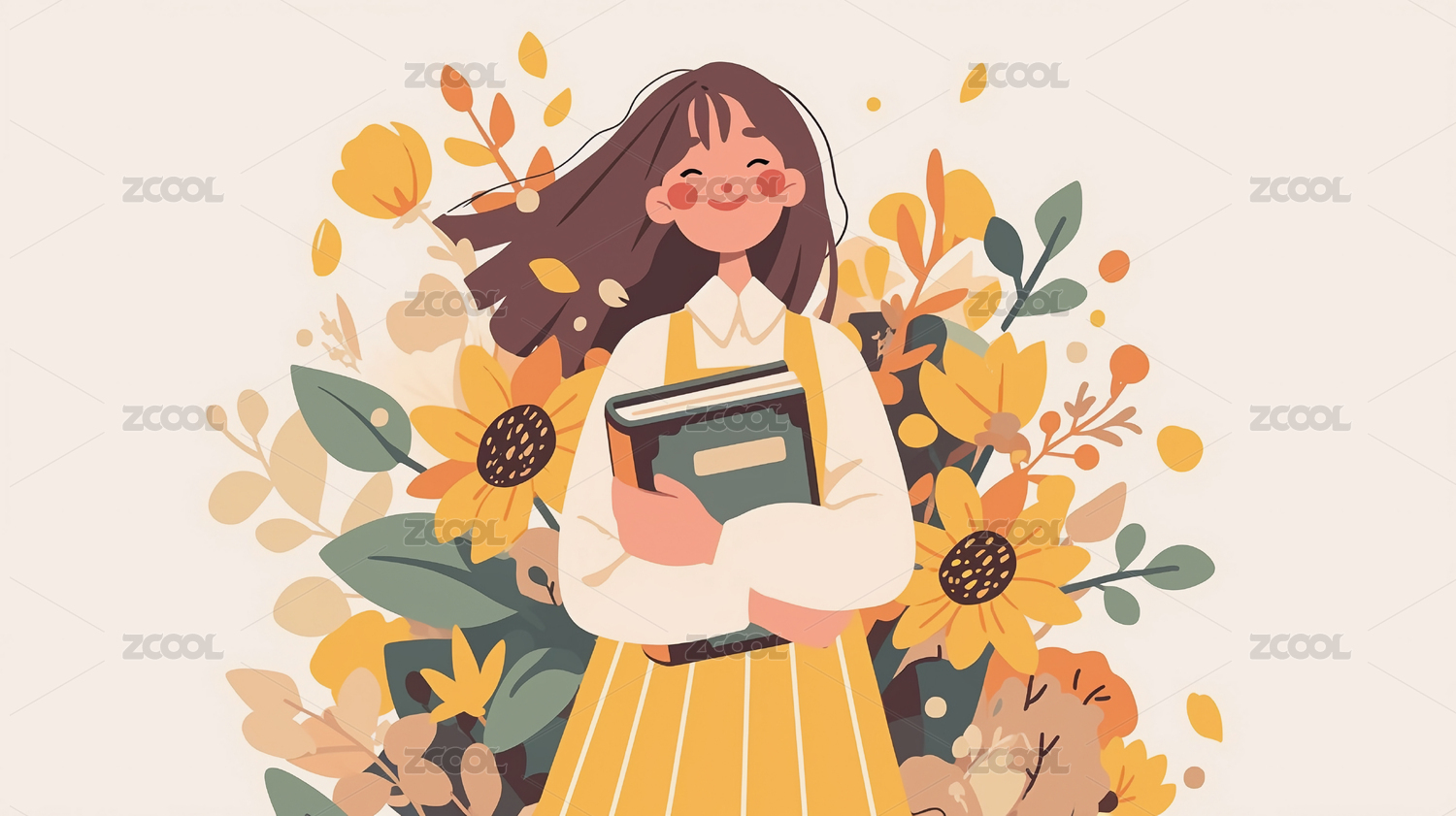 卡通女孩秋季秋天立秋二十四节气踏秋丰收
