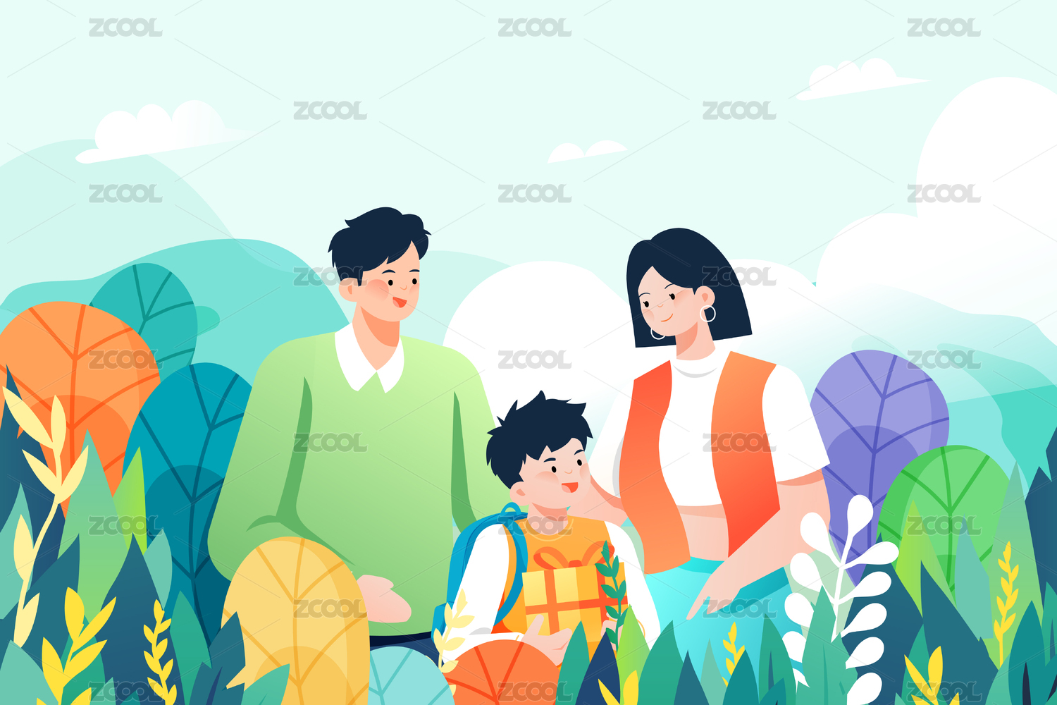 渐变,矢量,插画,插图,扁平,卡通,背景,元素,出游,庆祝
