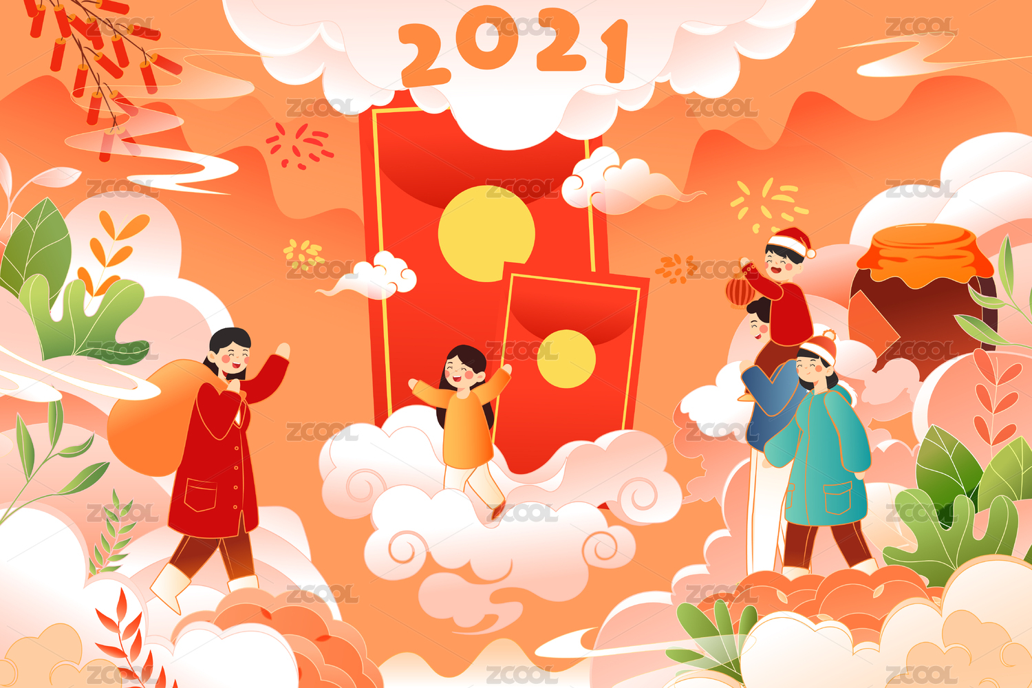 新春龙年过年人物传统喜庆矢量插画素材背景