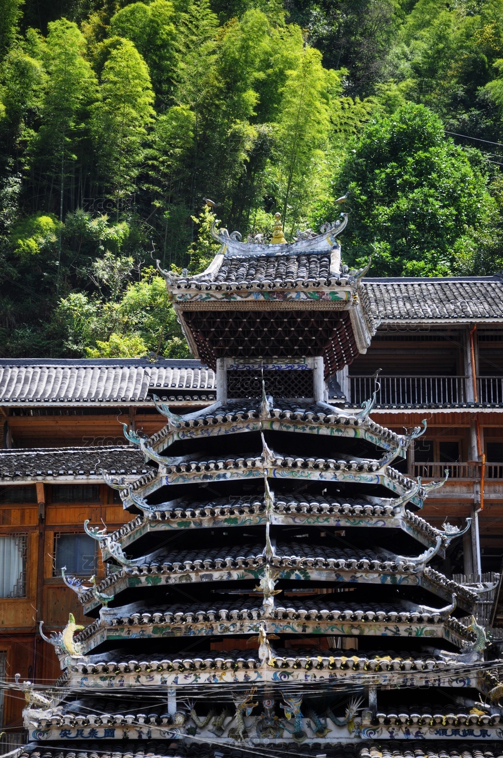 中国贵州肇兴侗寨的塔楼非物质文化遗产