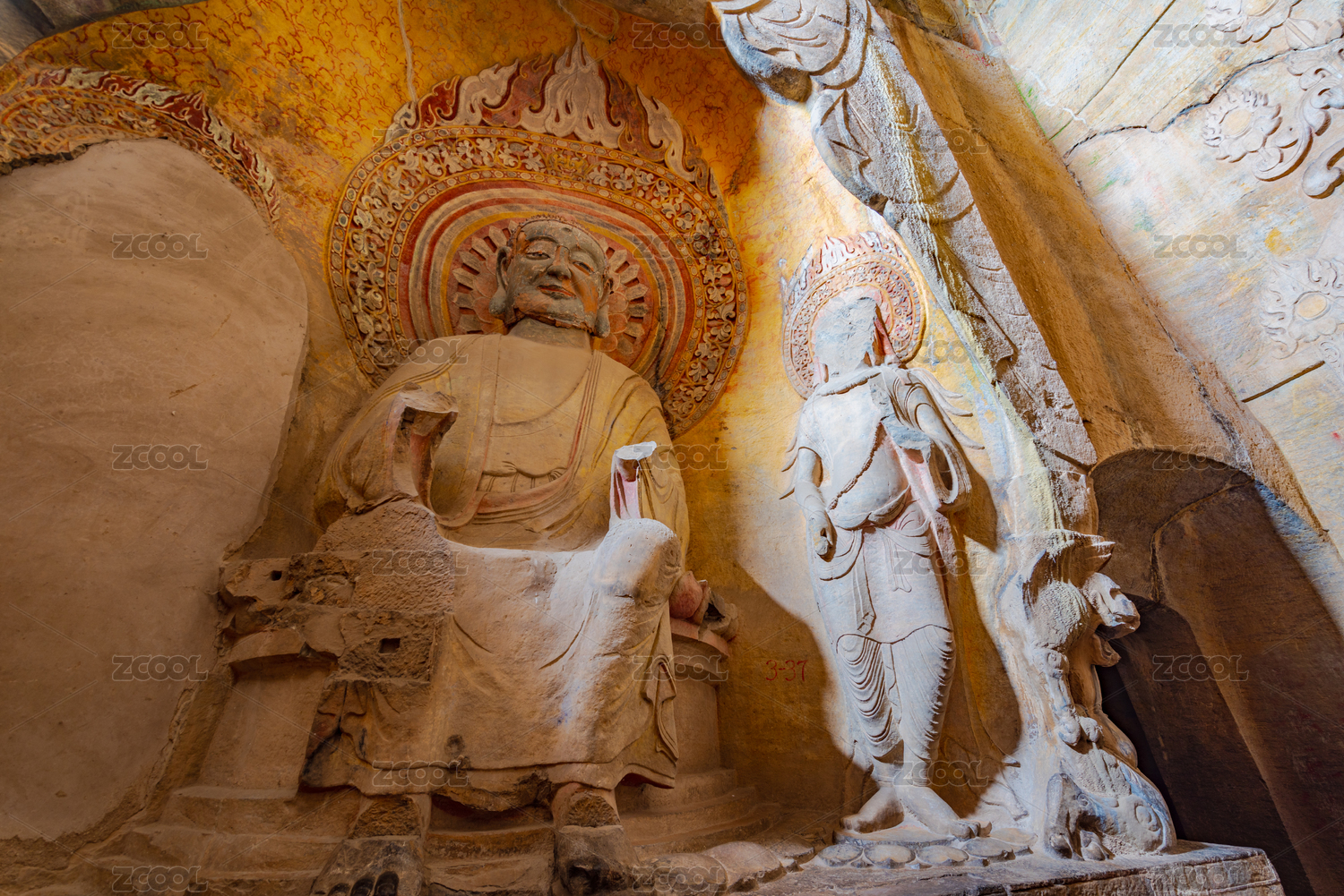 大同云冈石窟第六窟方形塔柱西面倚坐佛像