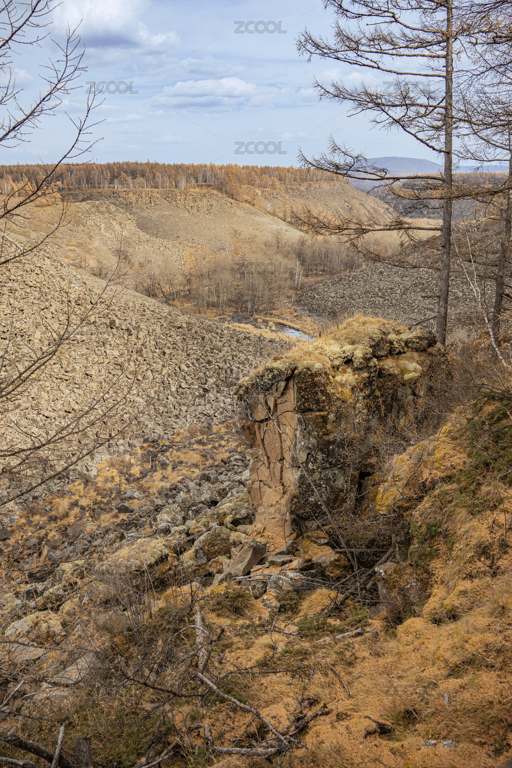 中国兴安盟阿尔山森林国家公园大峡谷秋景