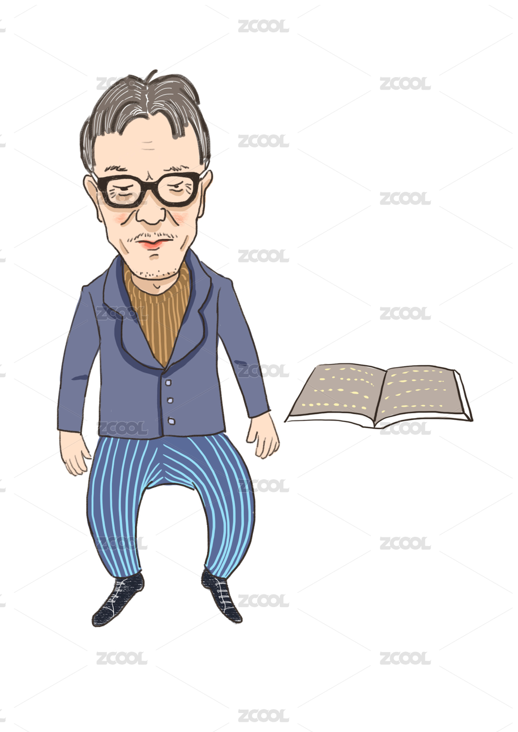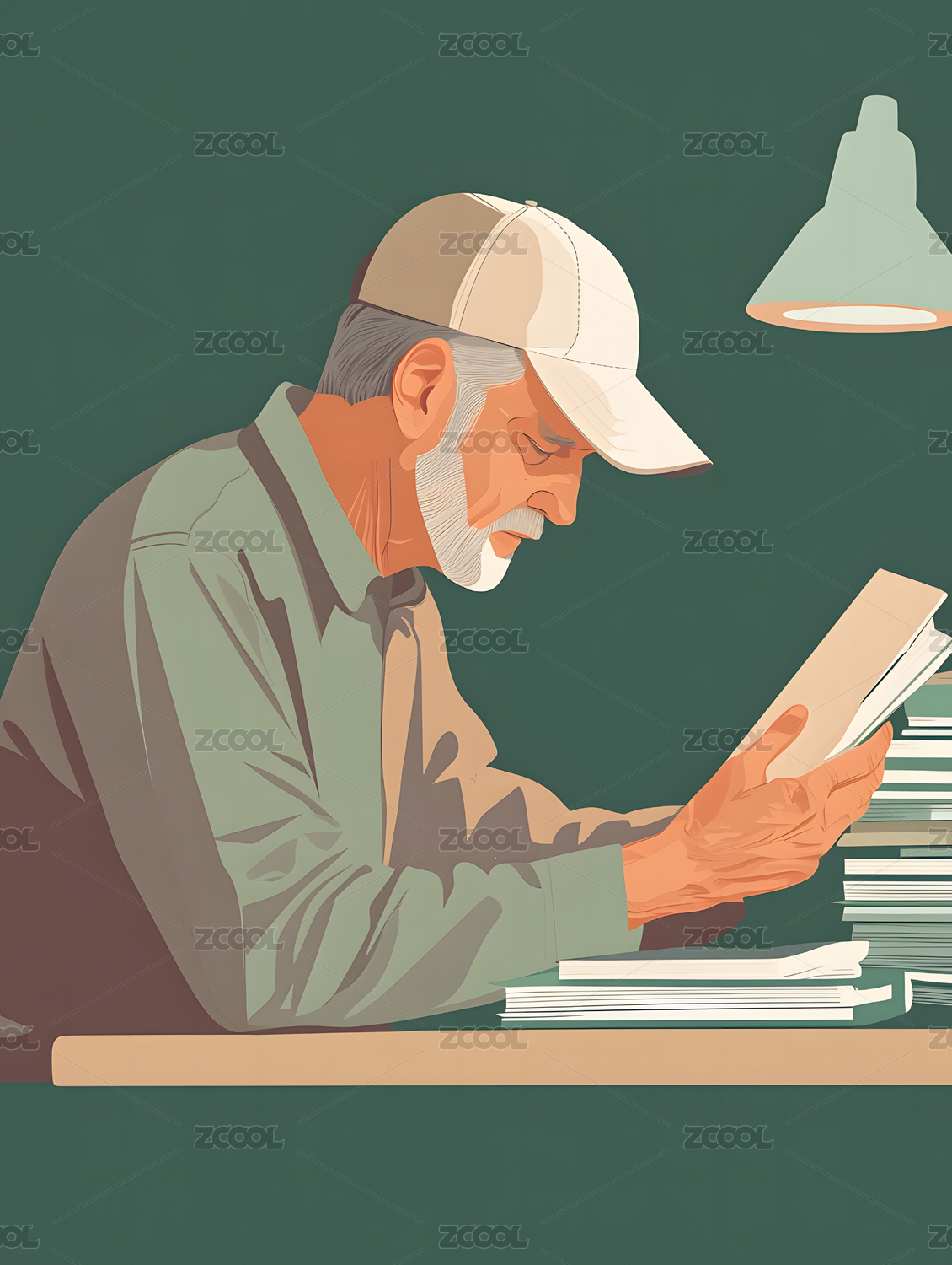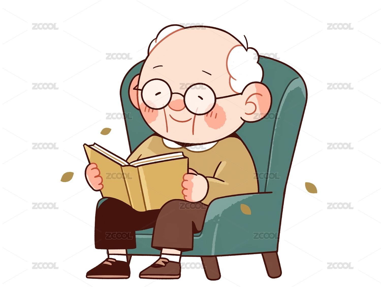 水彩风格的老爷爷看书